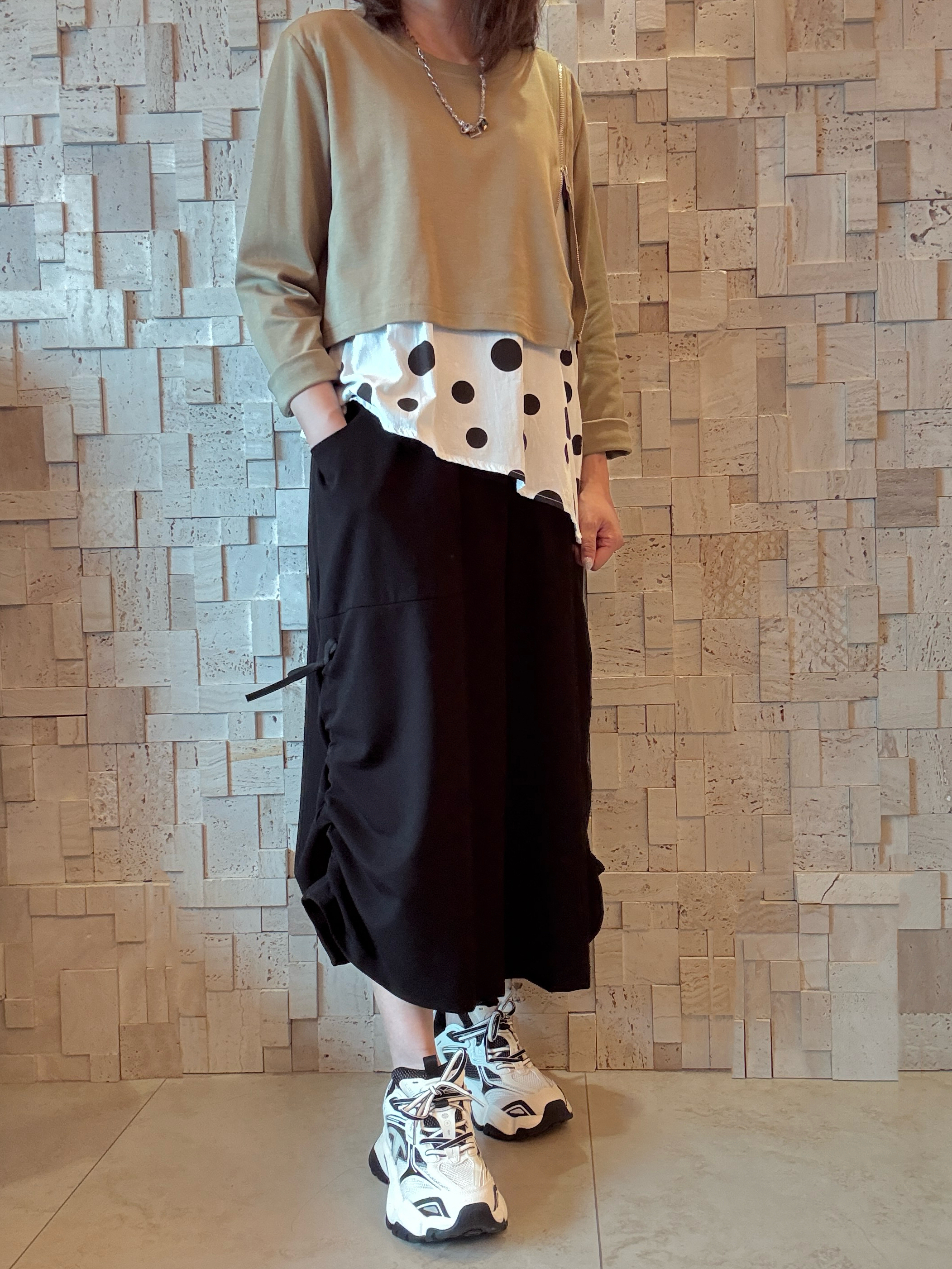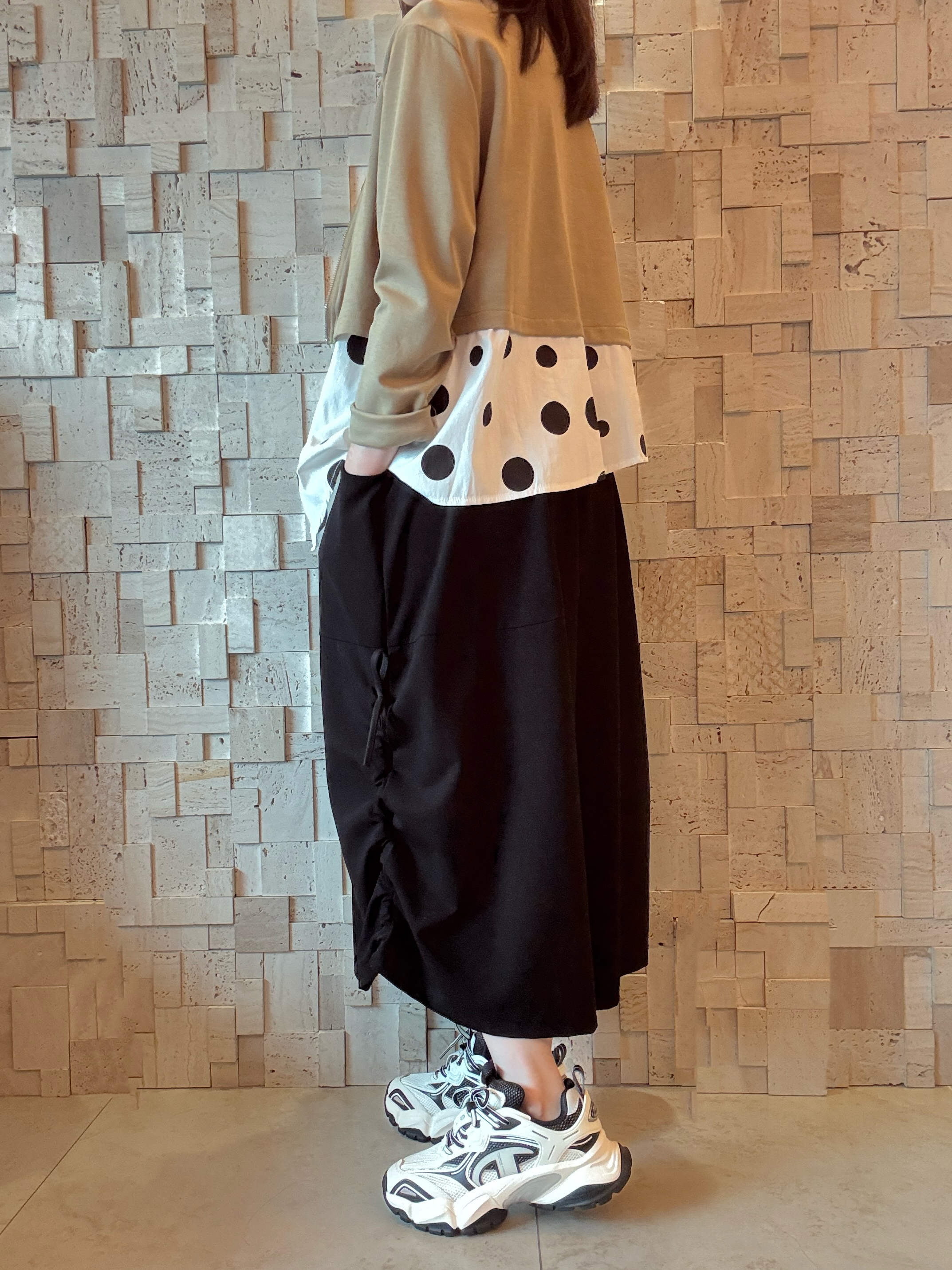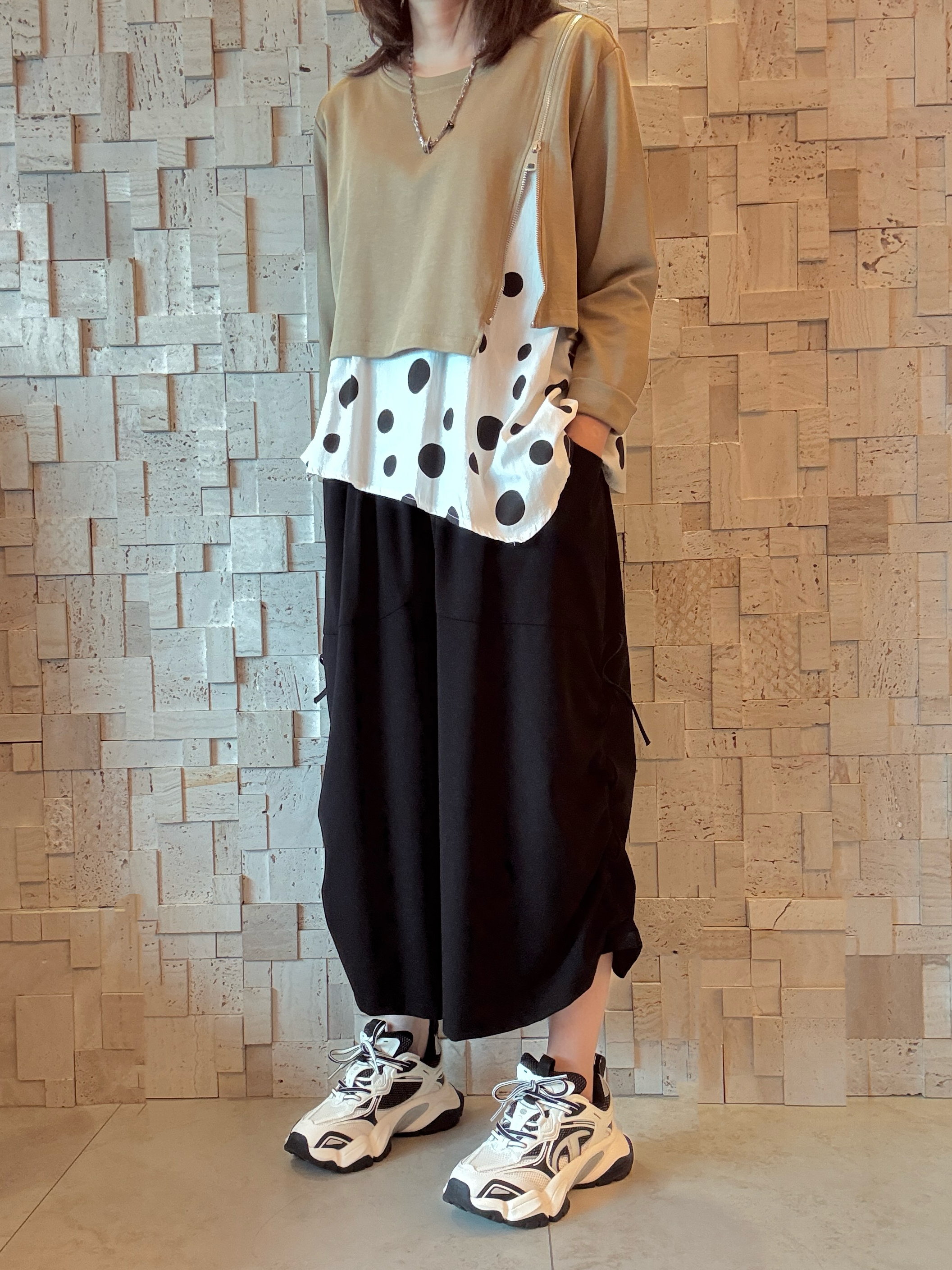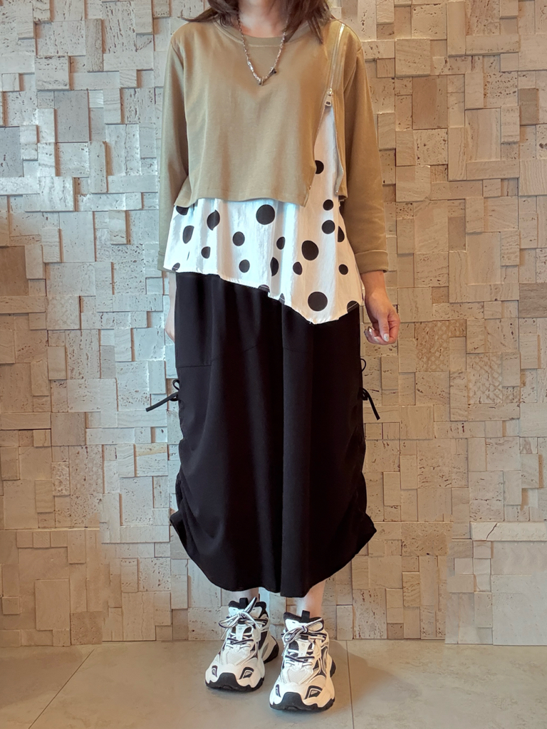 #1976 棉拼圓點棉布Top