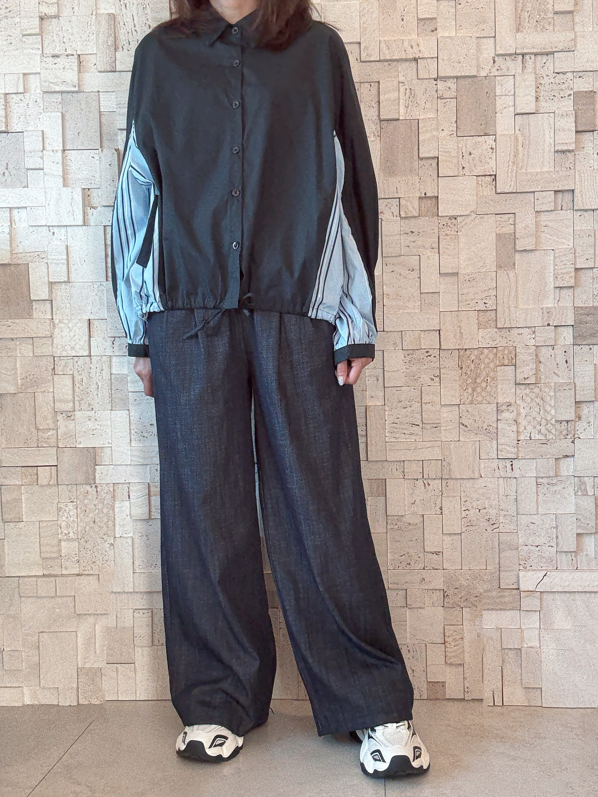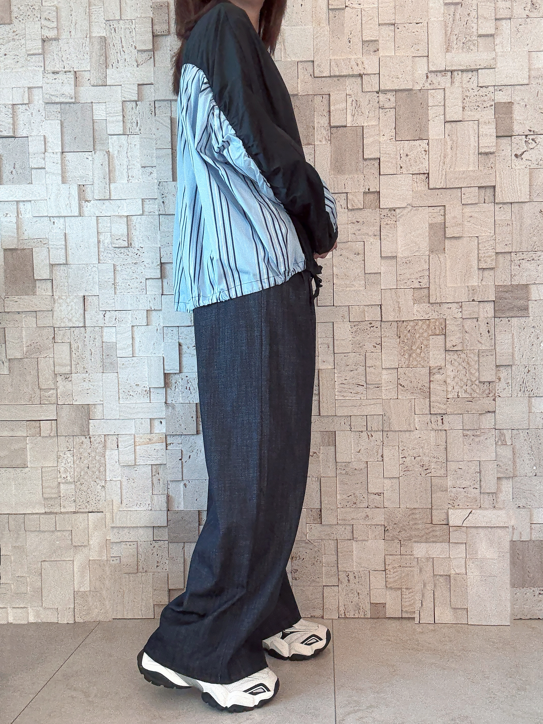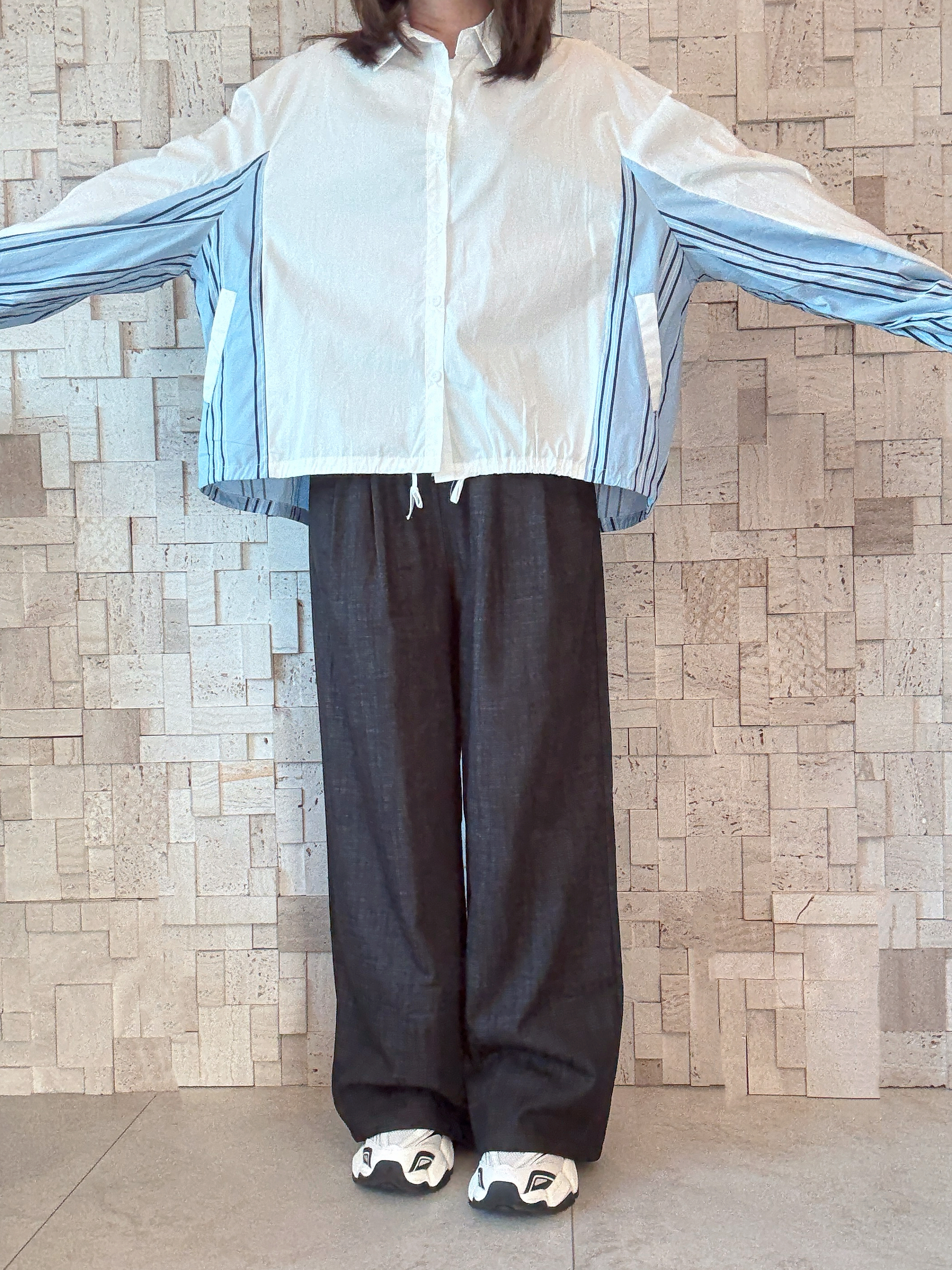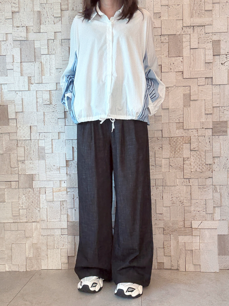 -鬆身款 質料輕盈 -衫腳位有束繩 -兩側有袋位 -襯高腰褲 絕配