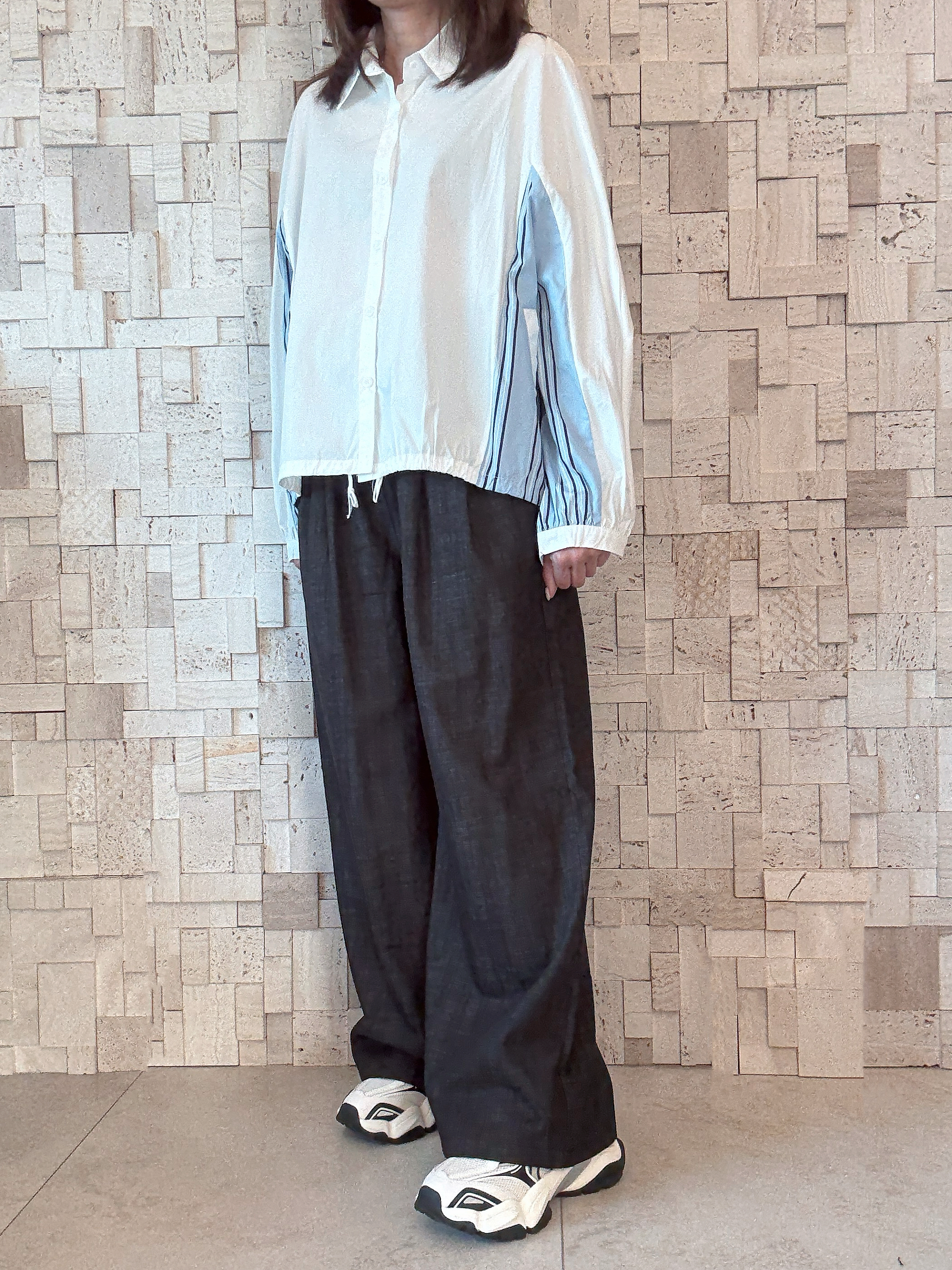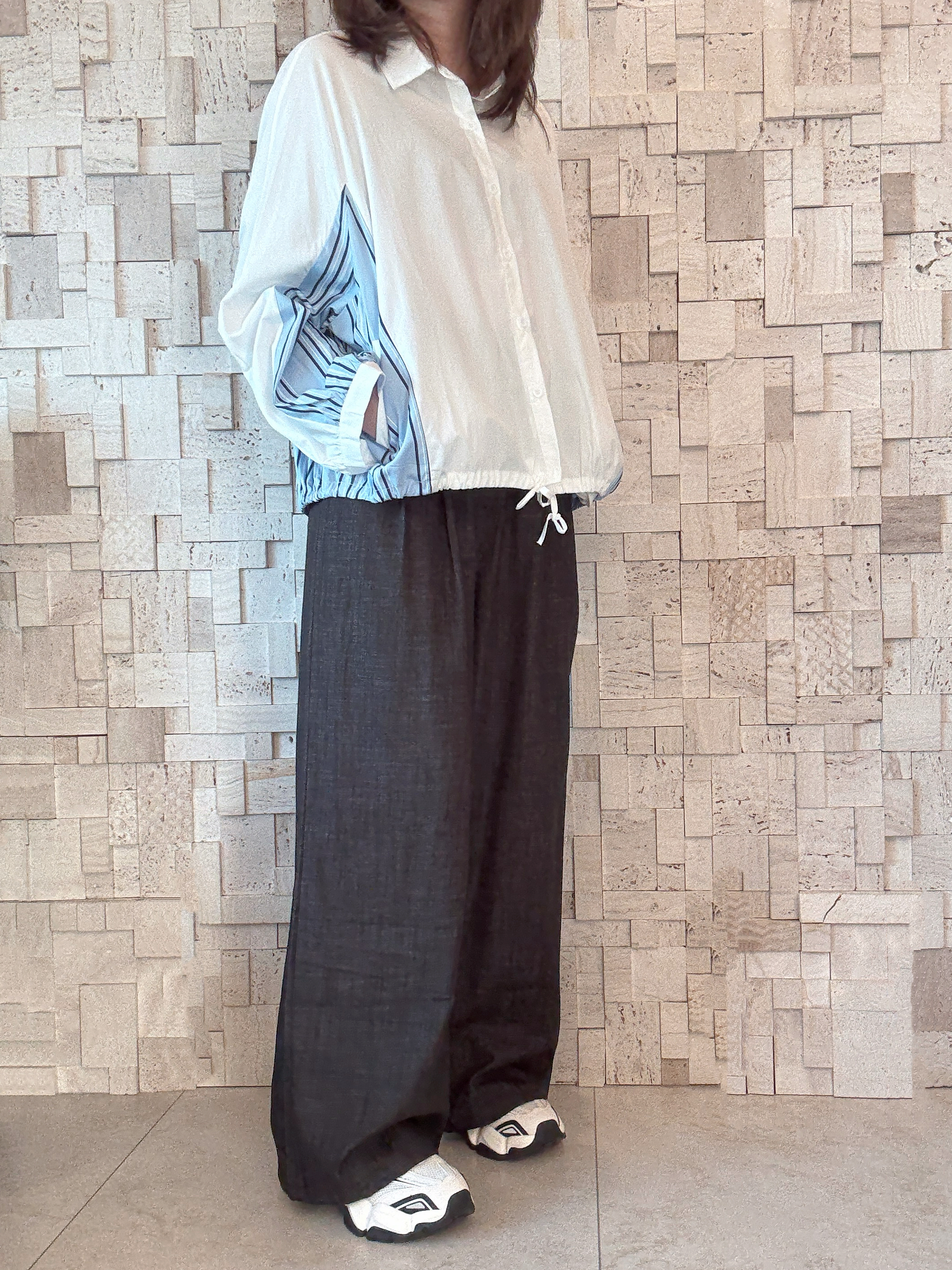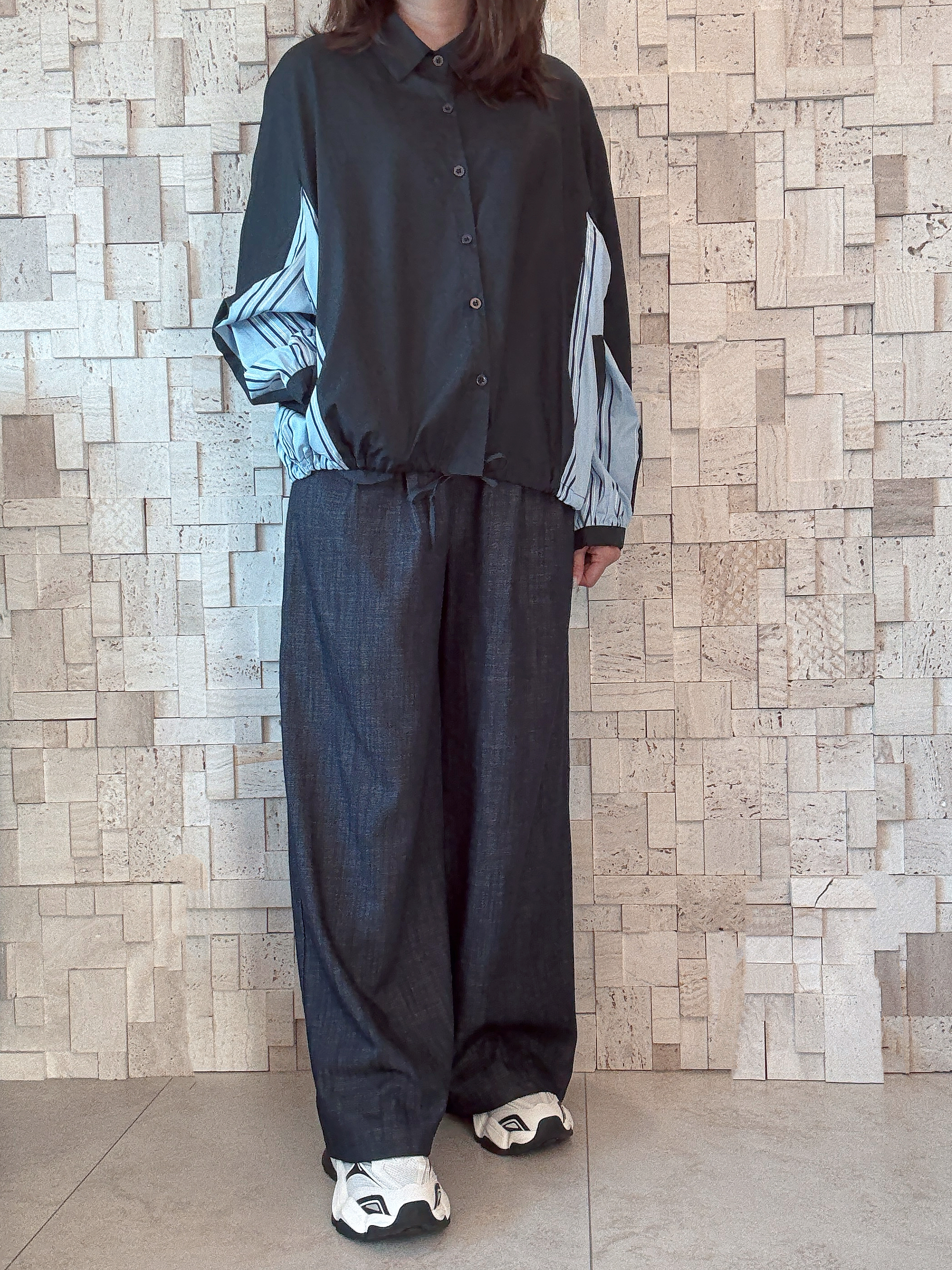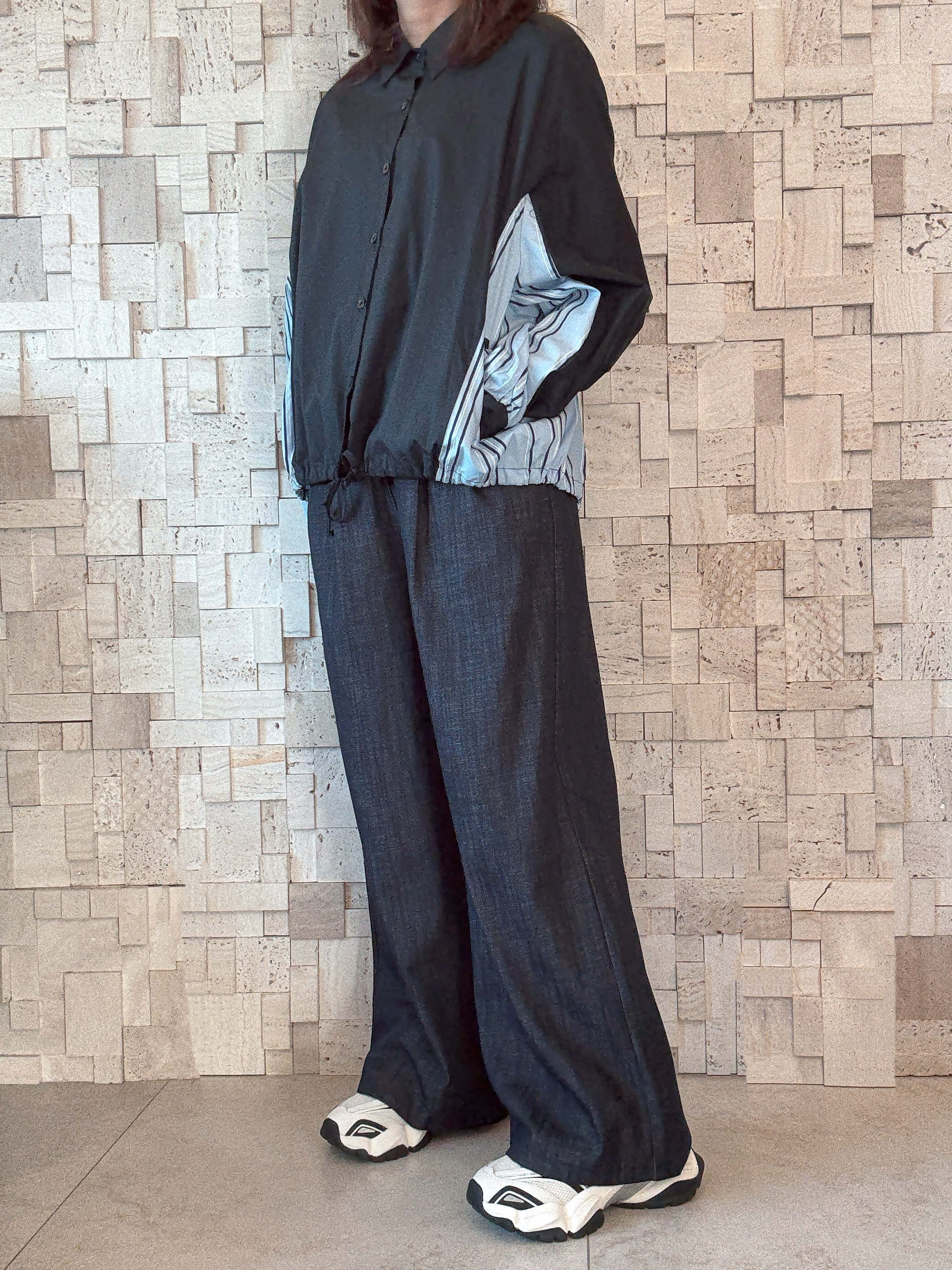 -鬆身款 質料輕盈 -衫腳位有束繩 -兩側有袋位 -襯高腰褲 絕配