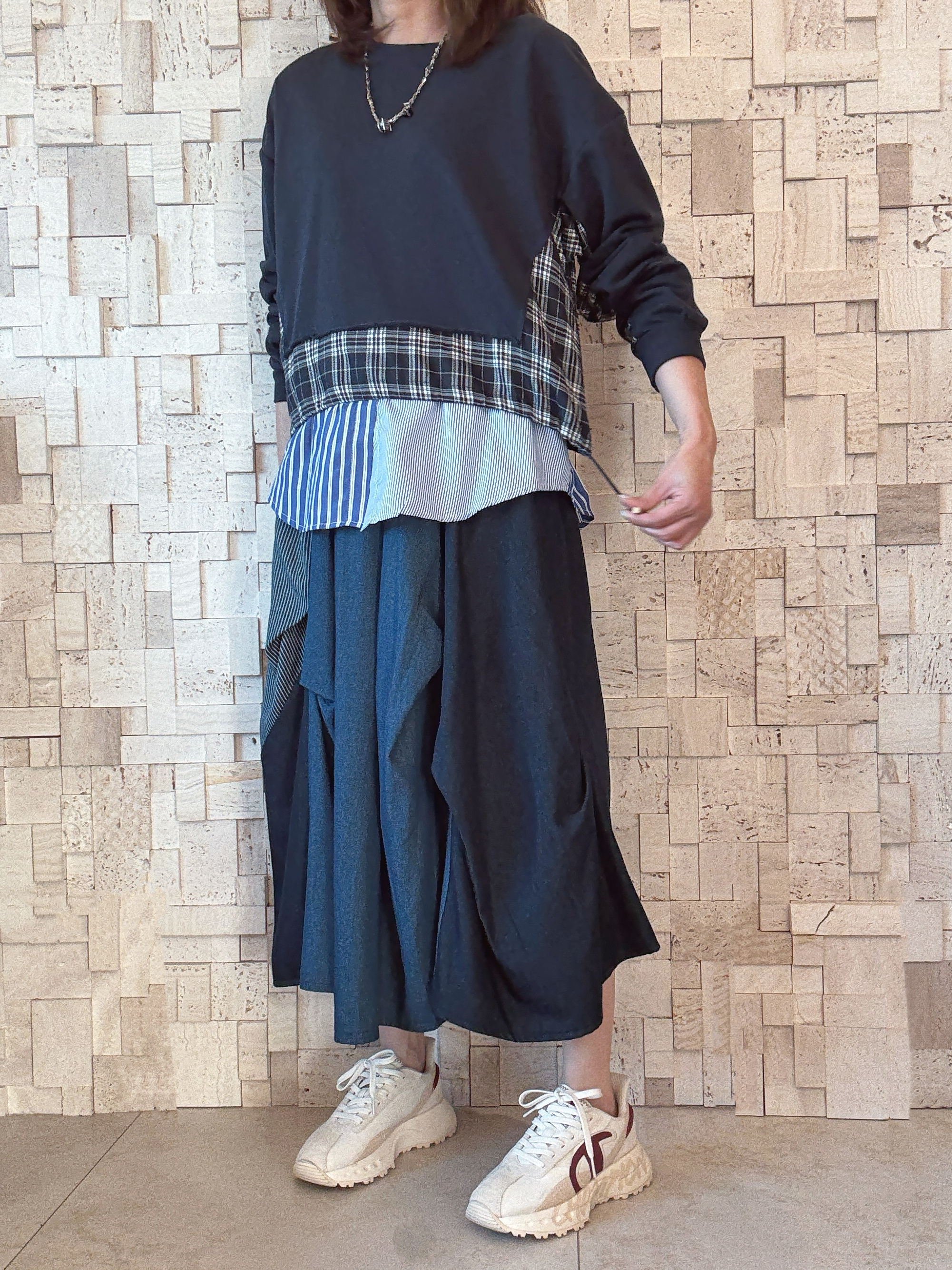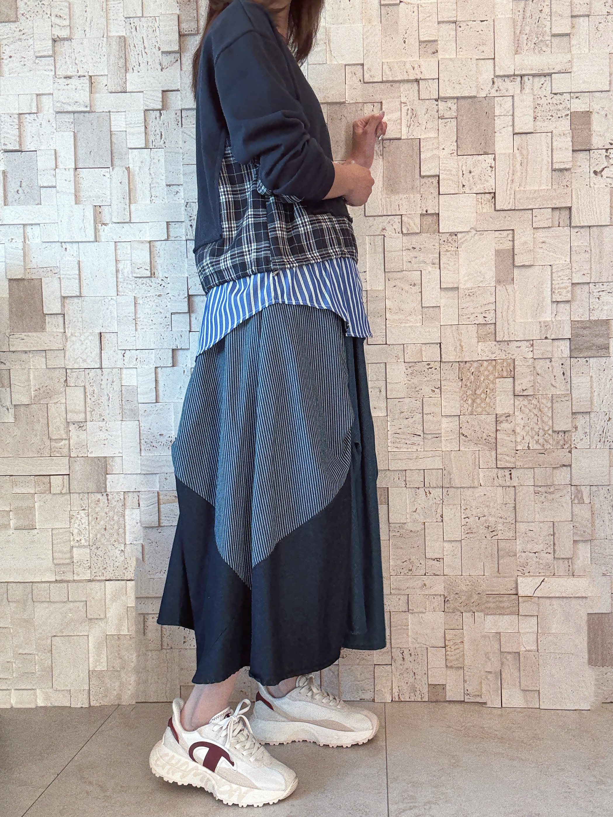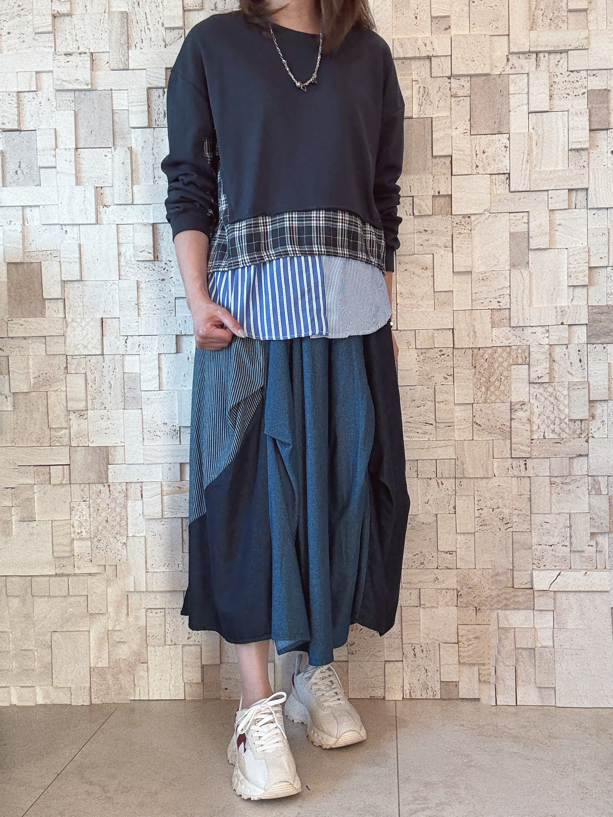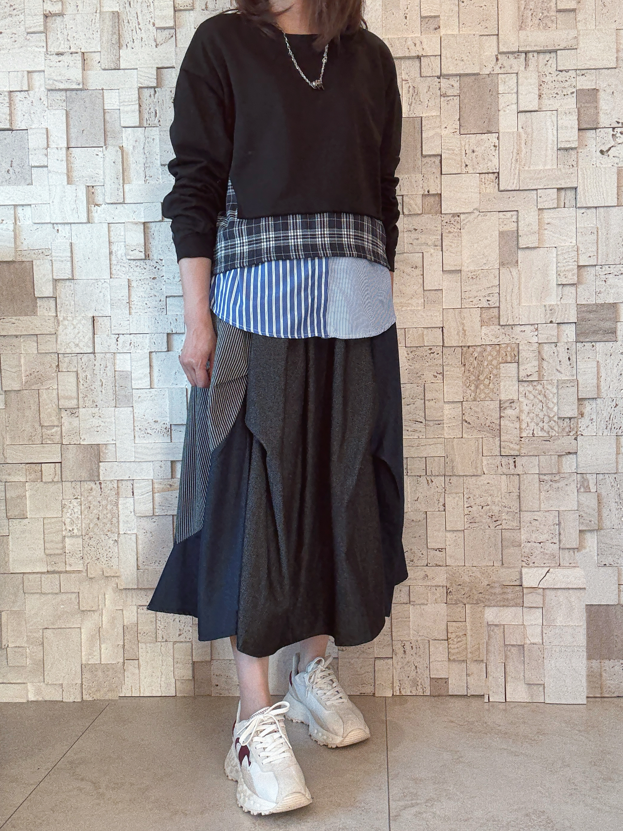 -手袖側至底部用咗格仔條子做拼接 -有層次感 有款有型 -襯呢條裙 完美😍