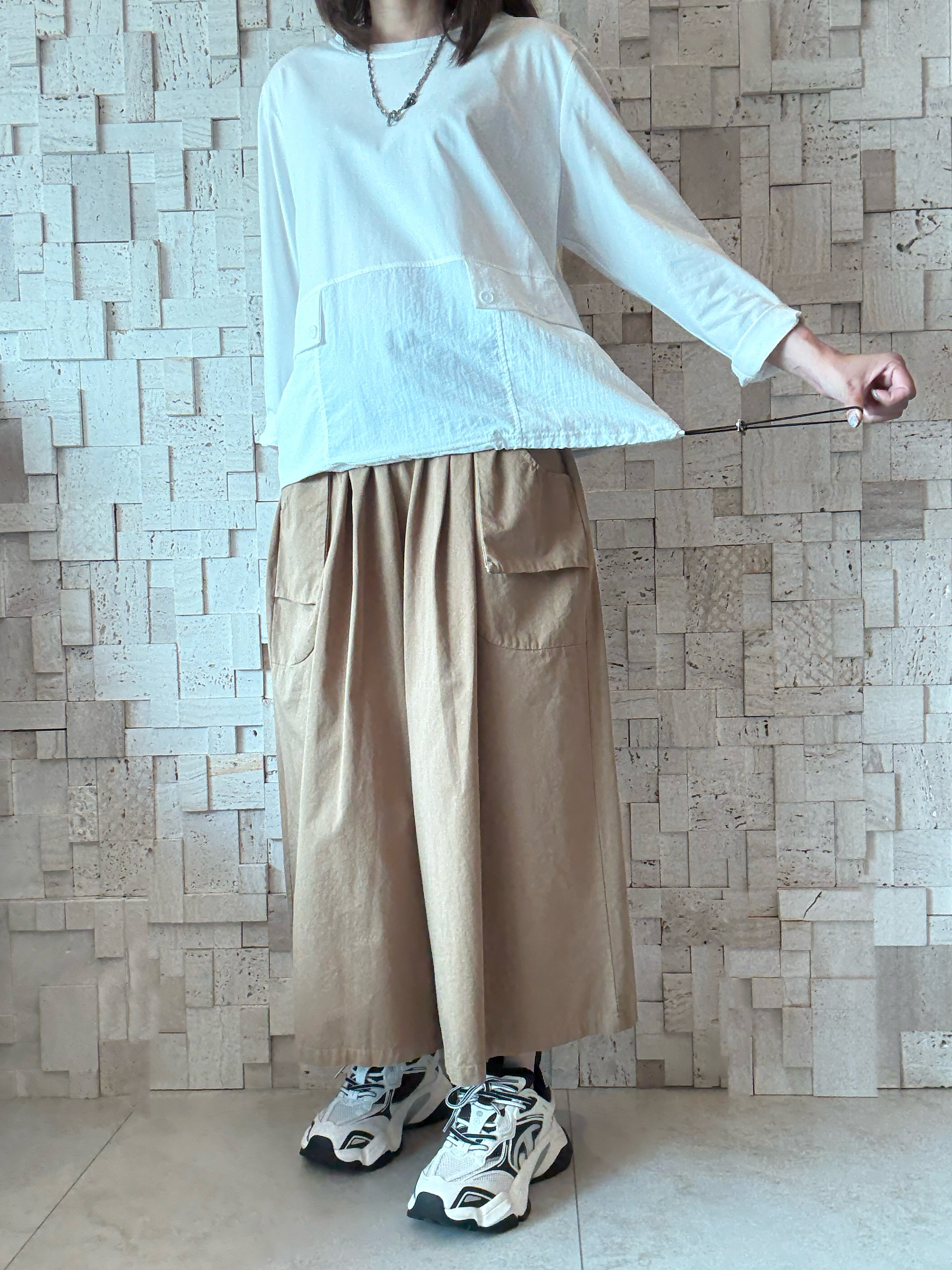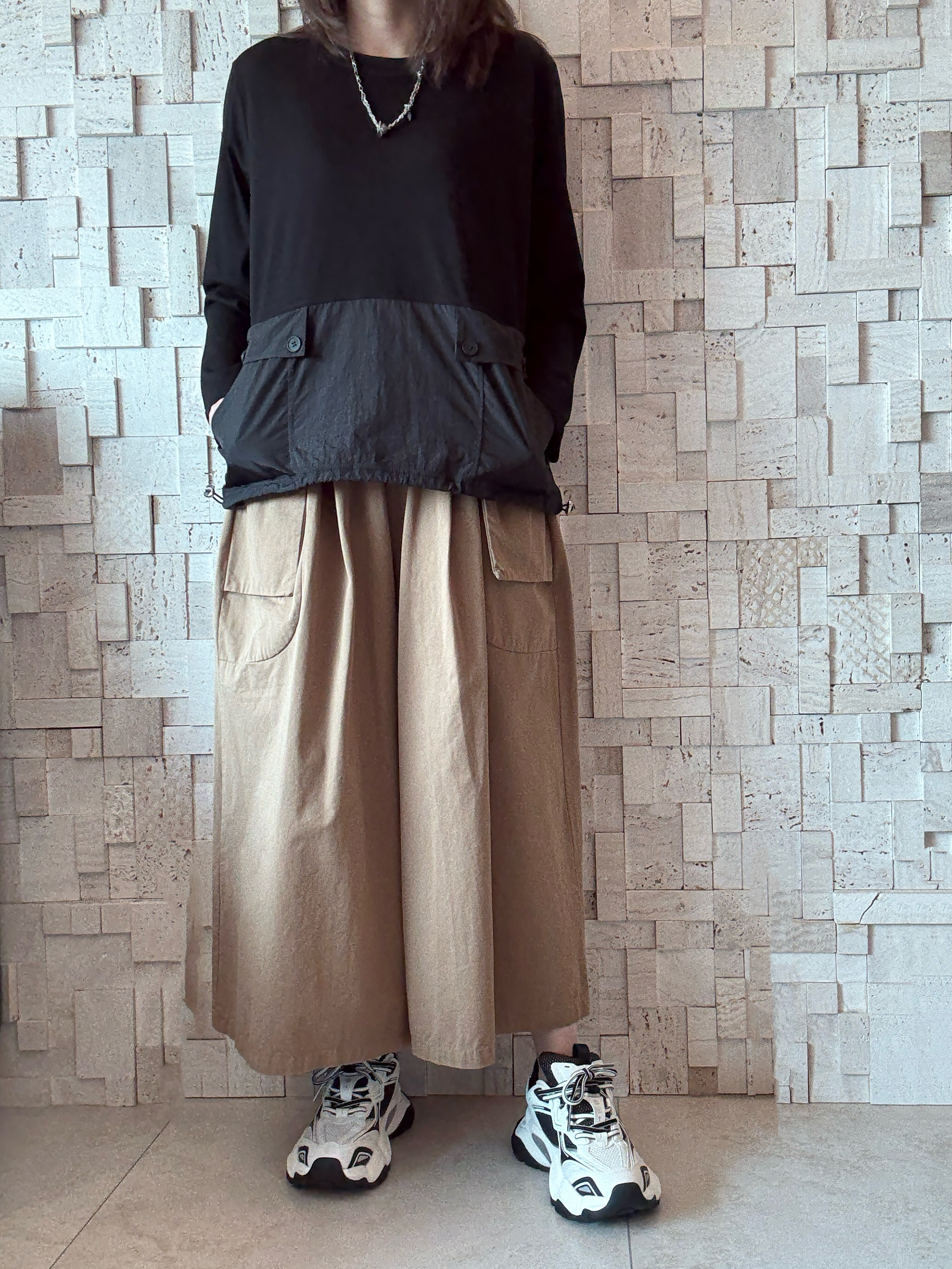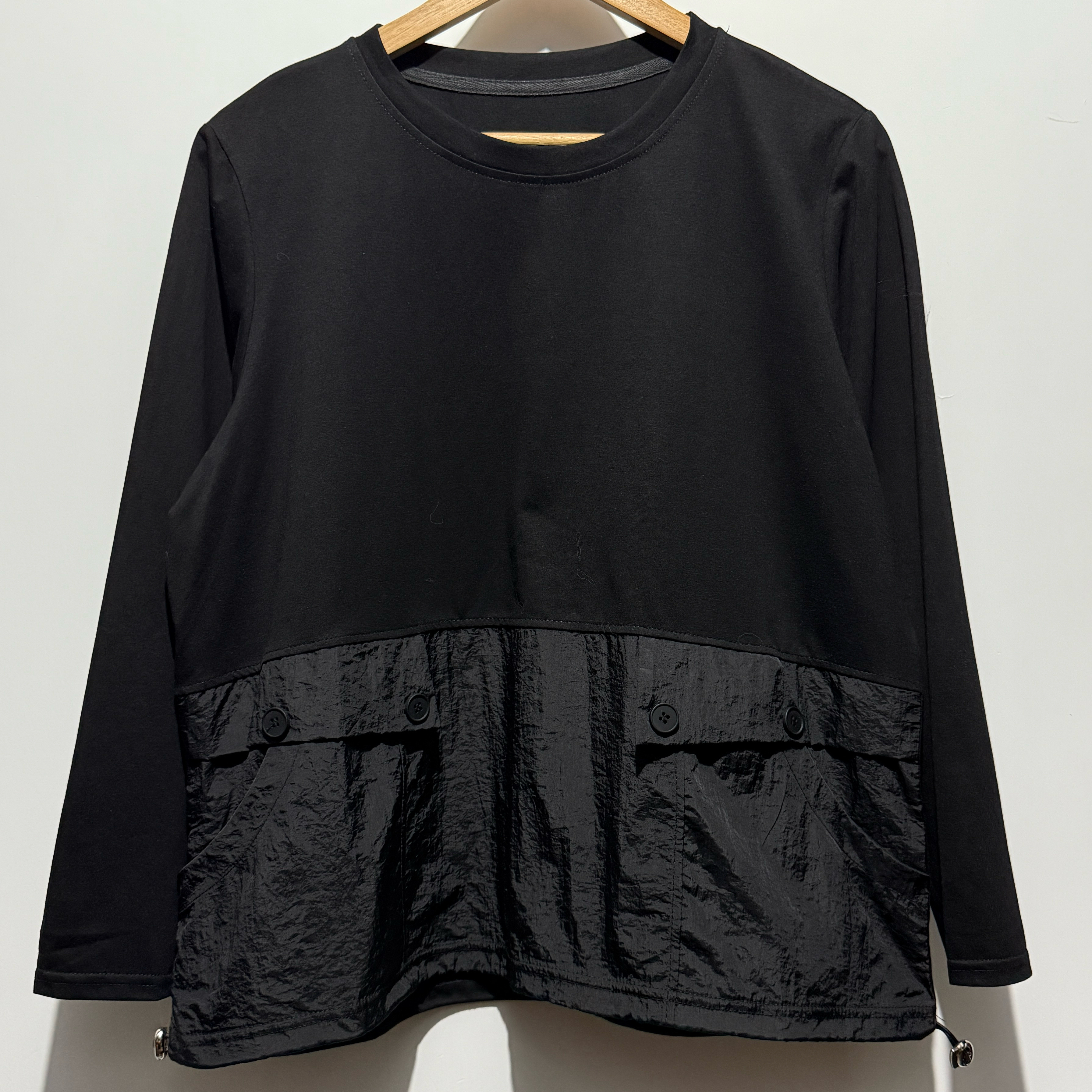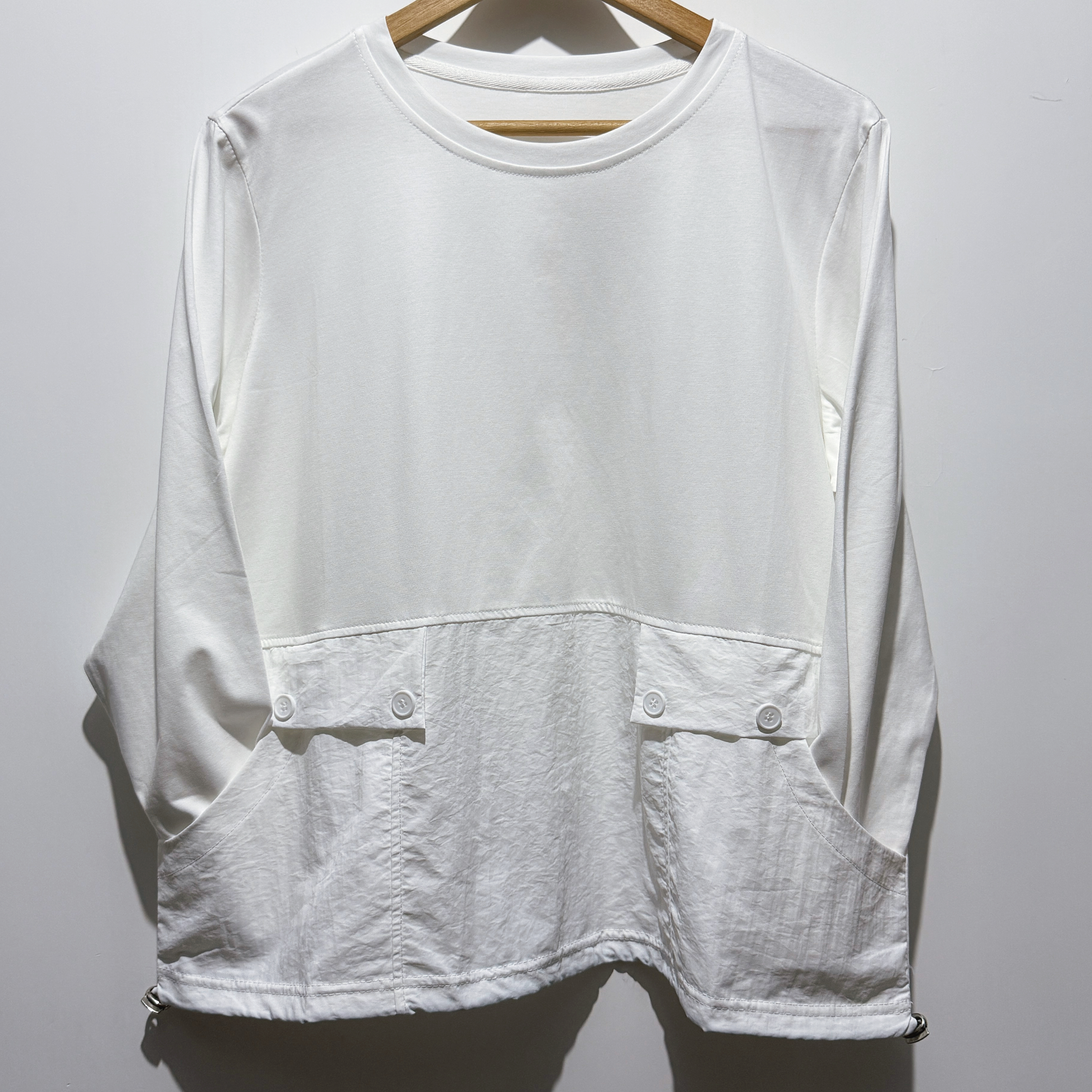 -薄棉拼滑梳織質料 -雙袋 衫腳有束帶