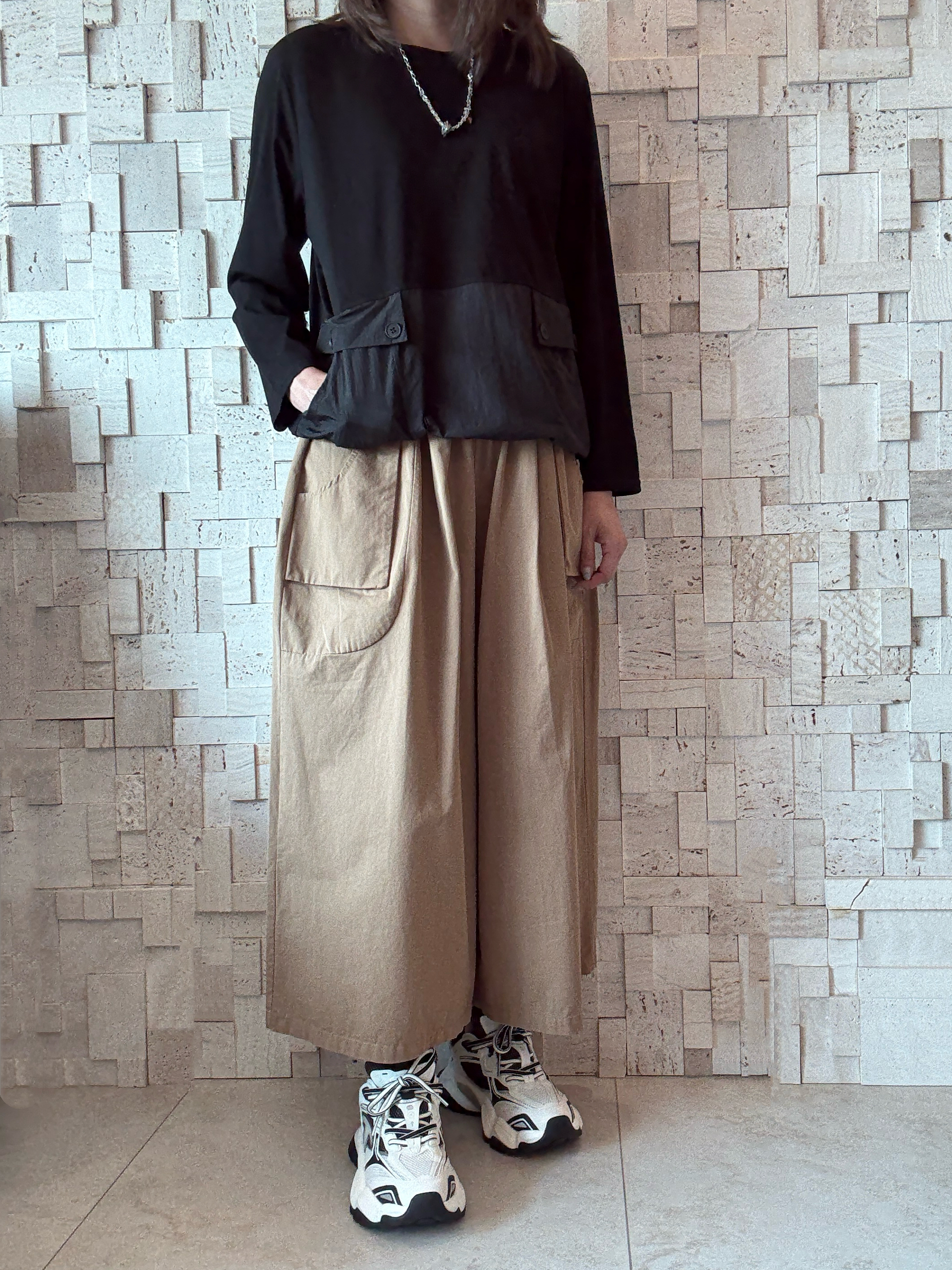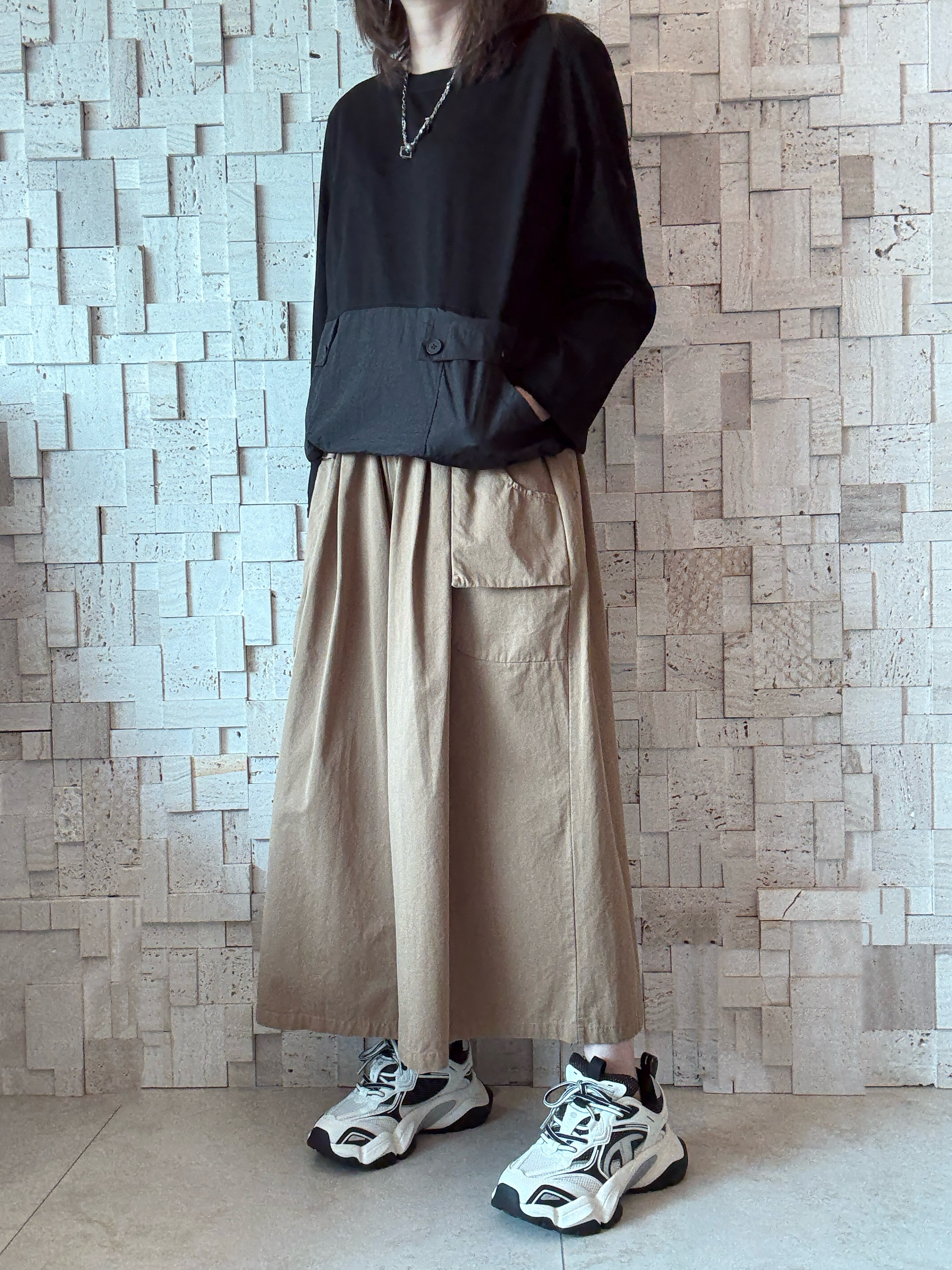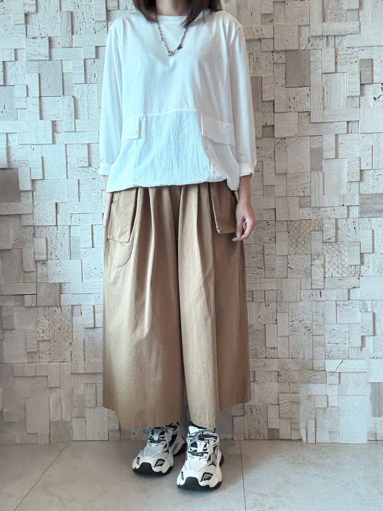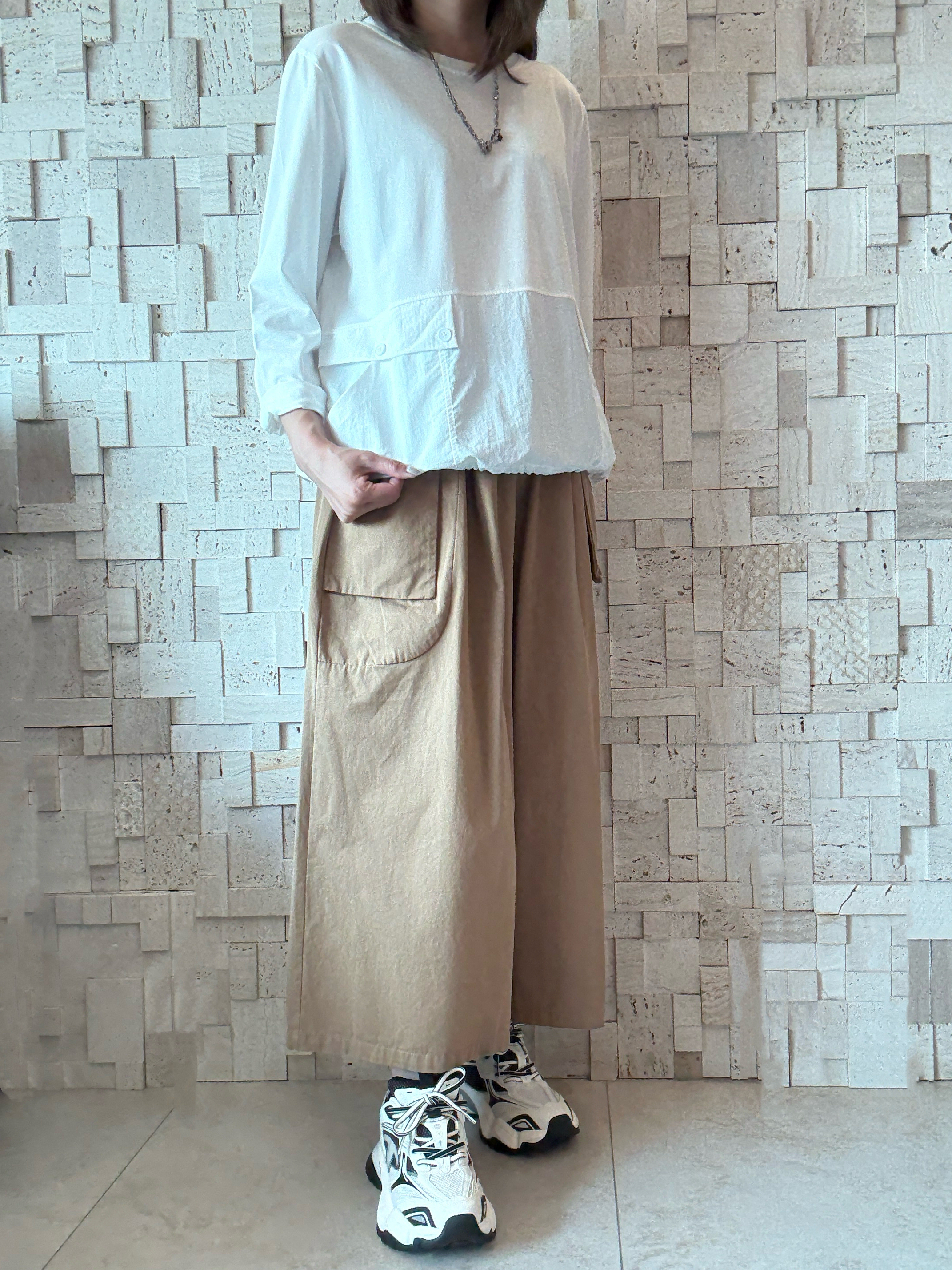 -薄棉拼滑梳織質料 -雙袋 衫腳有束帶