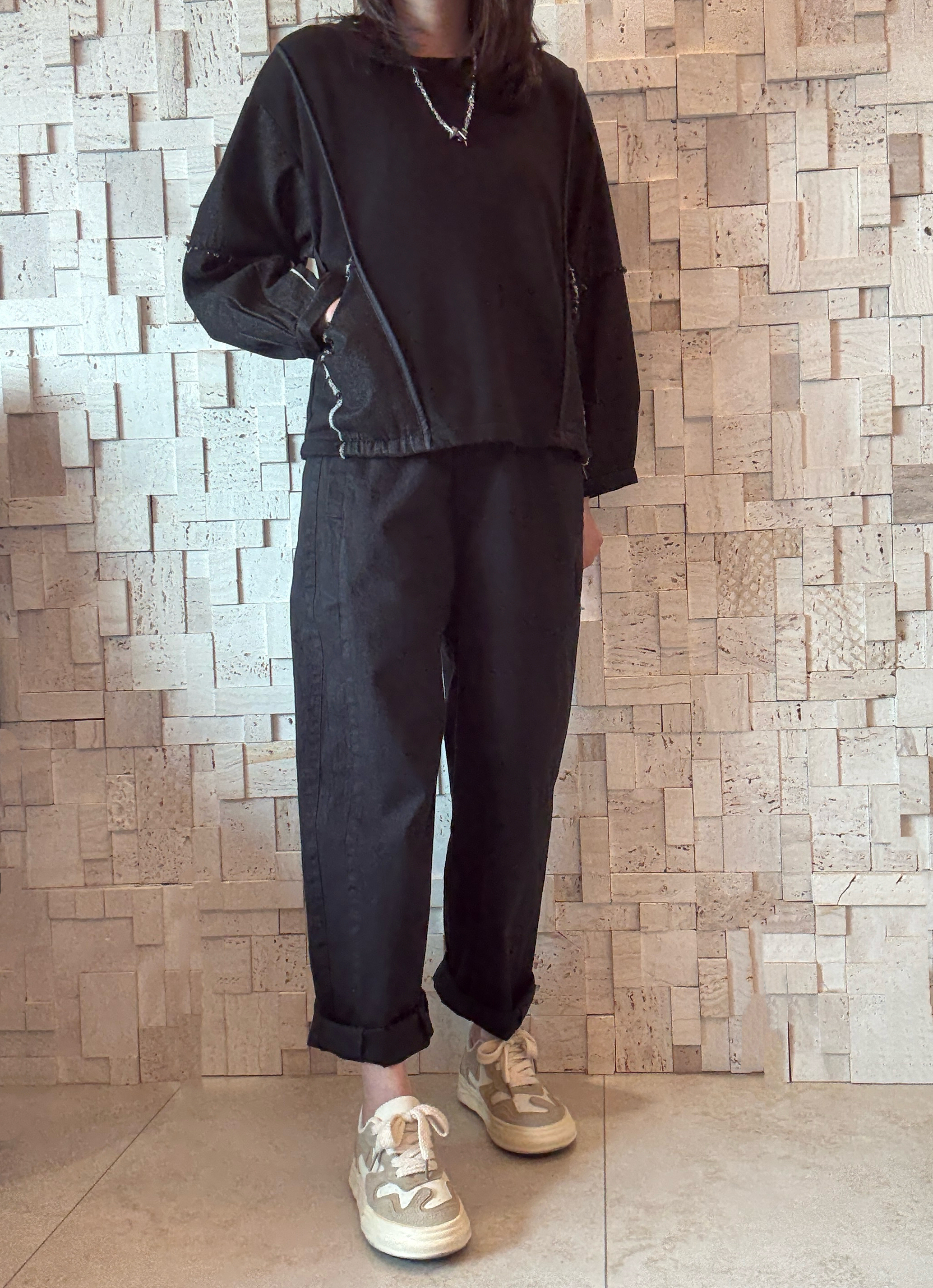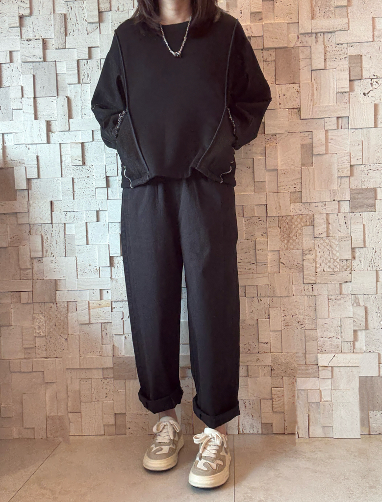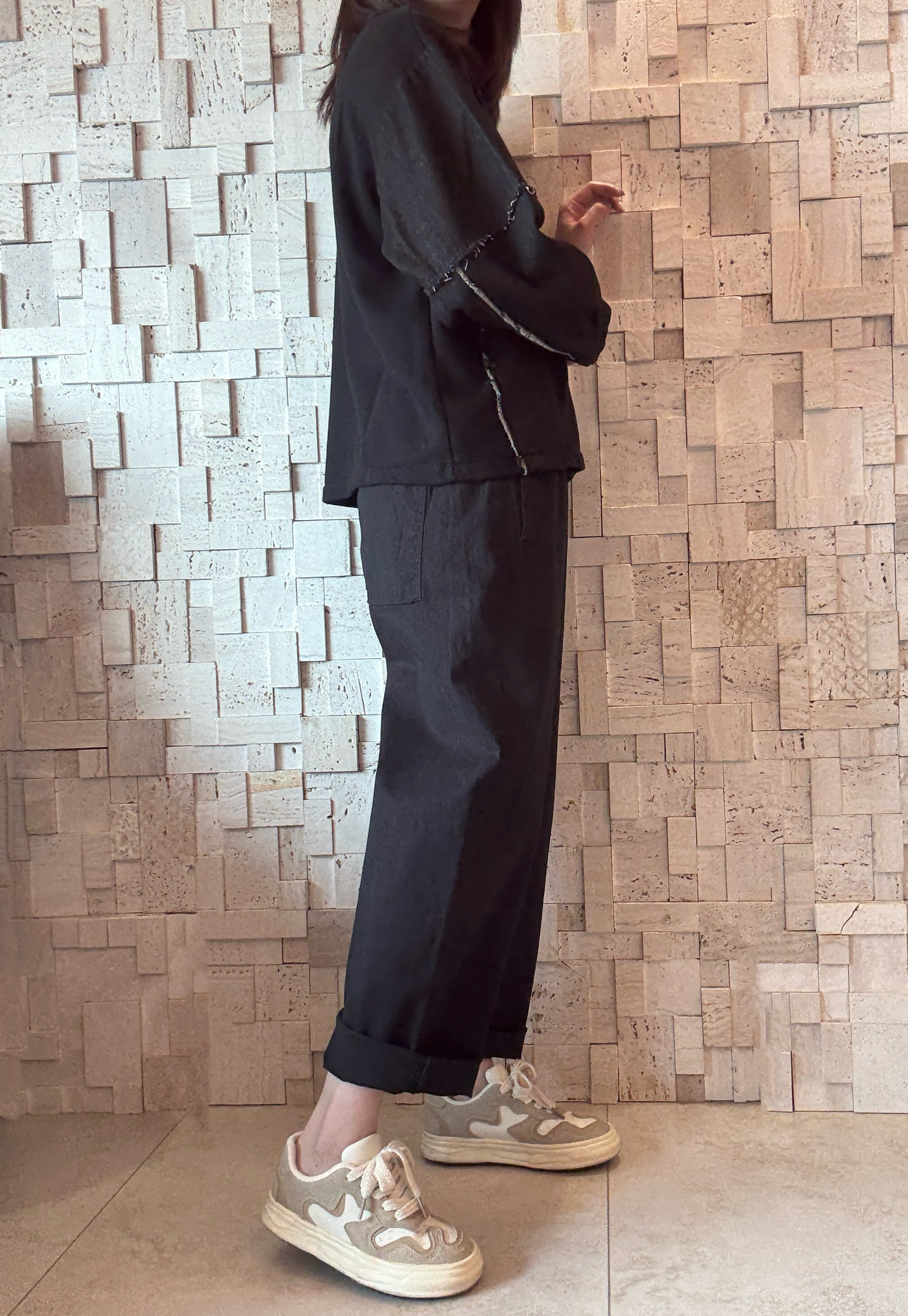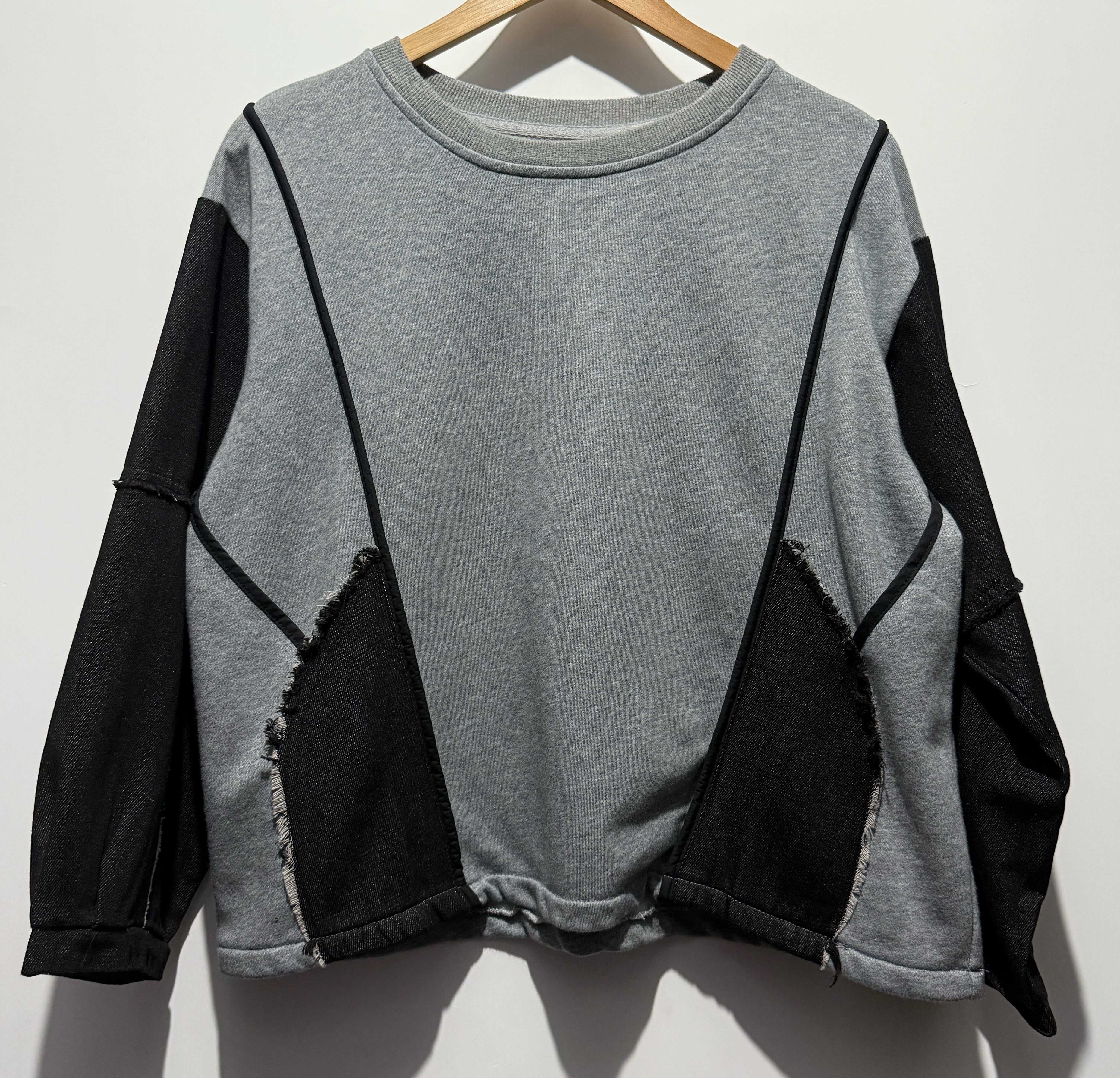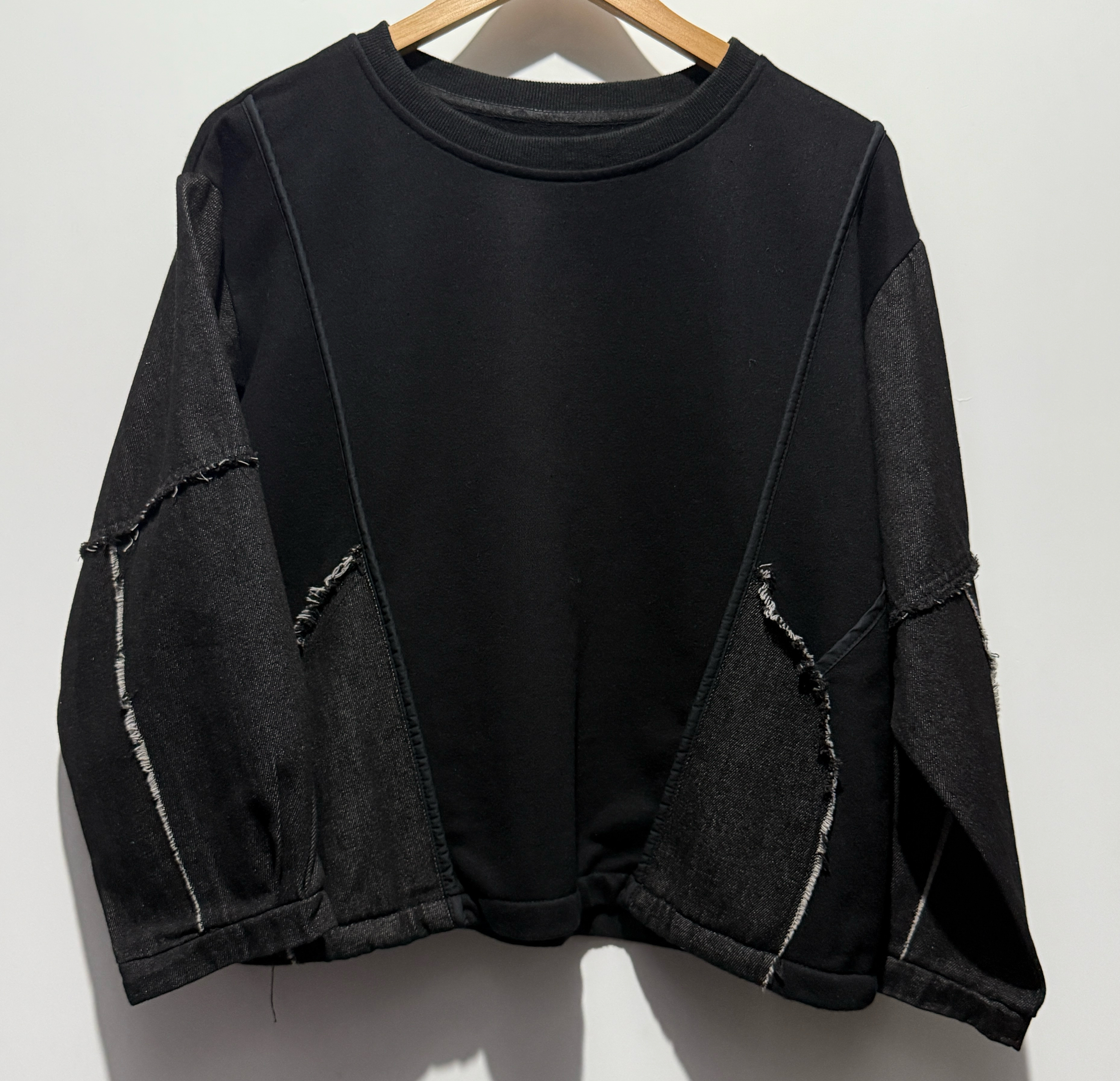 -珠地棉質料 -黑色牛仔拼接手袖 -有兩個直袋位