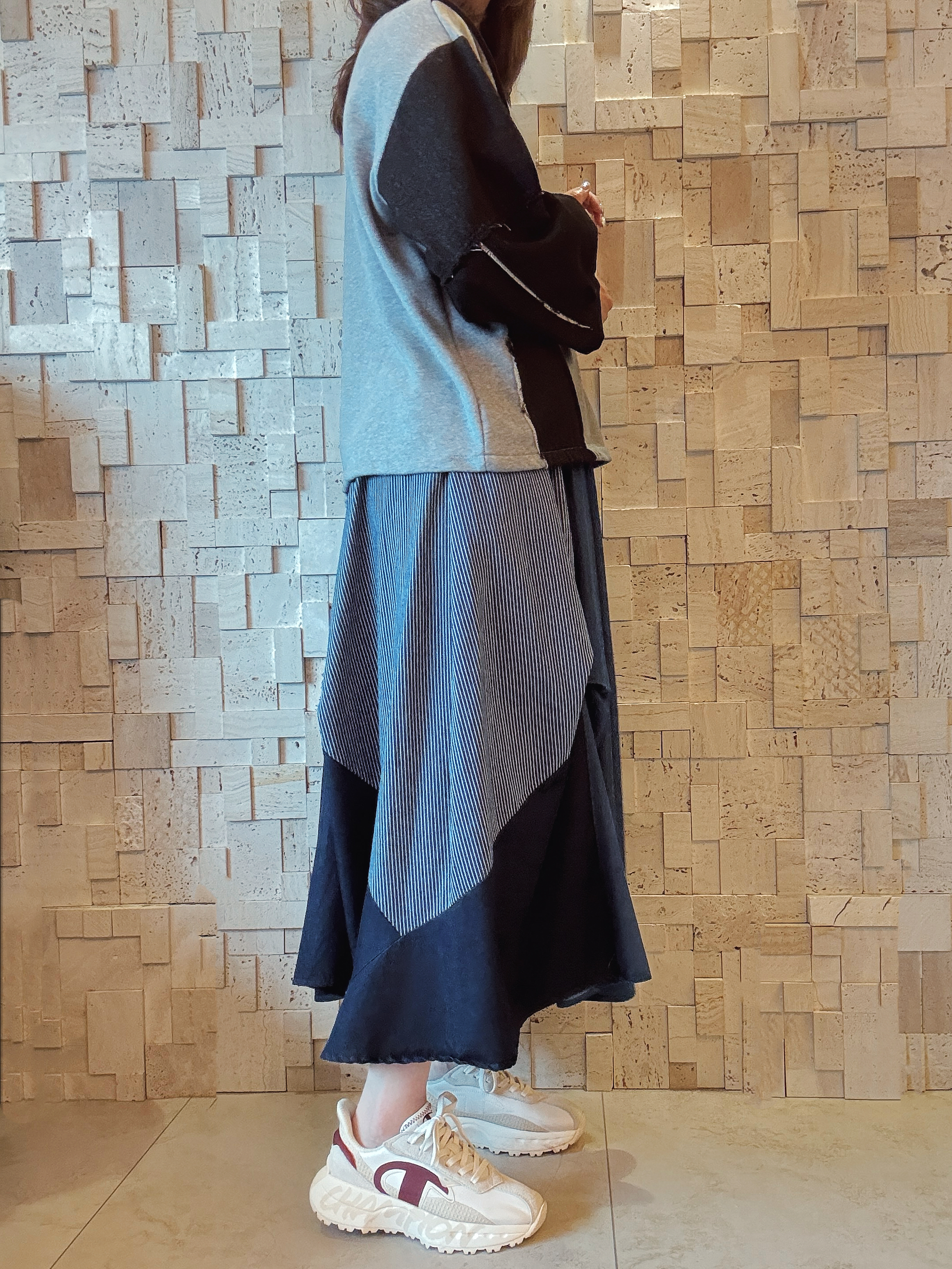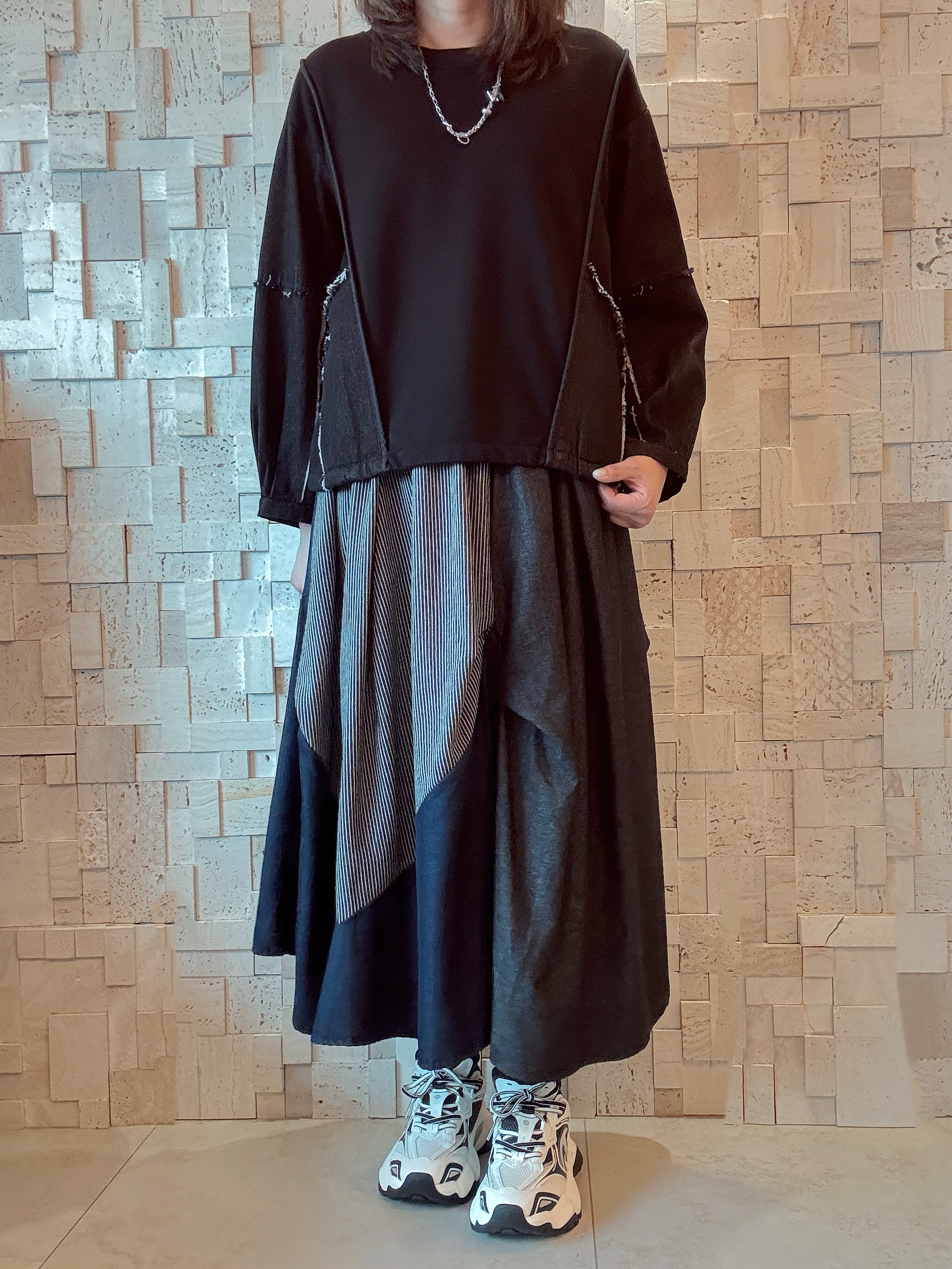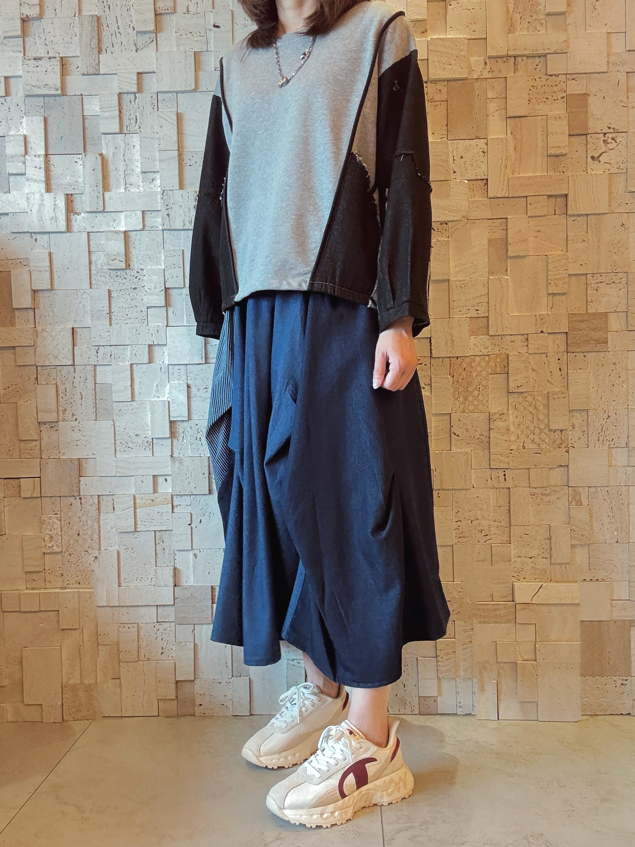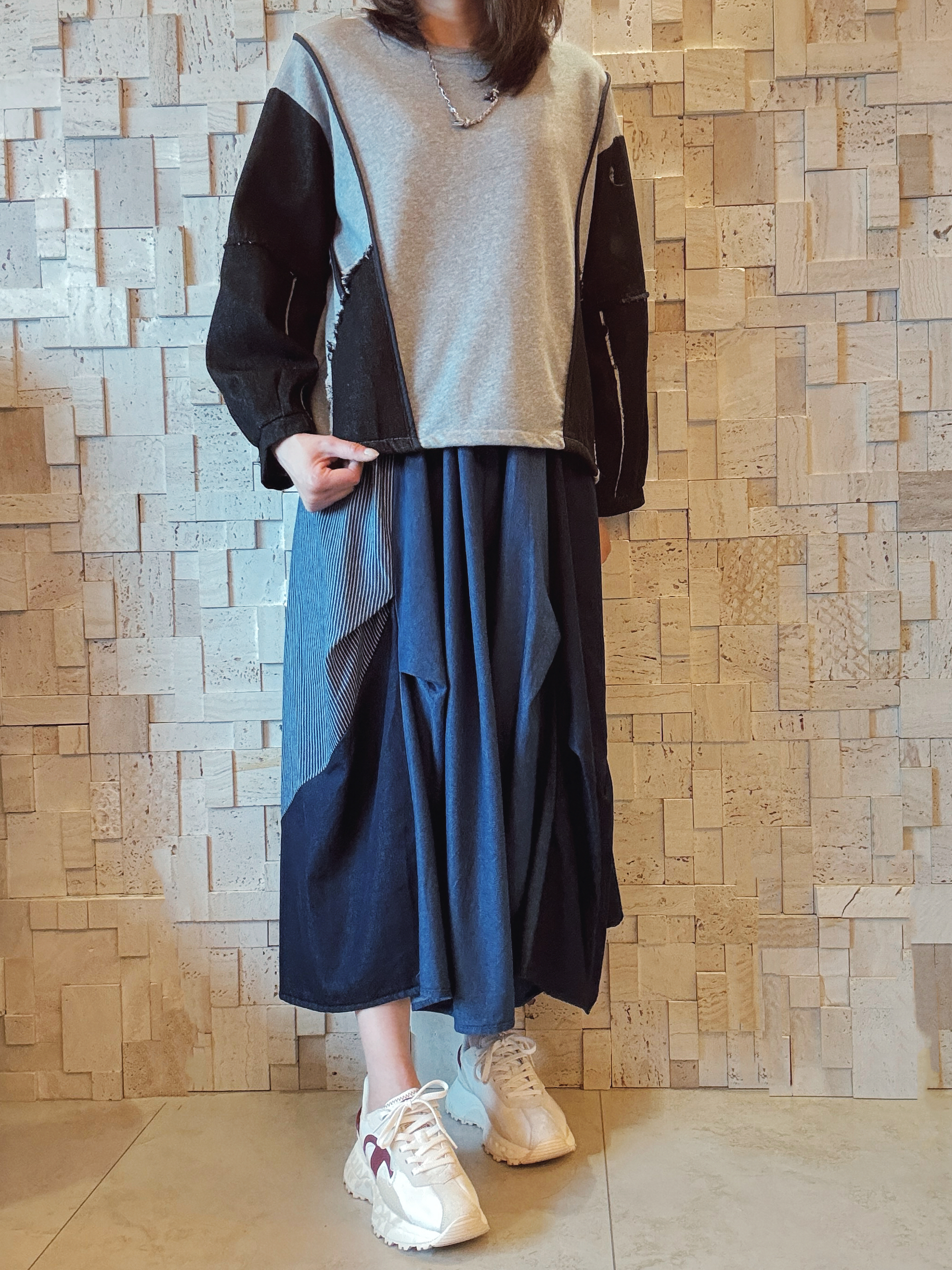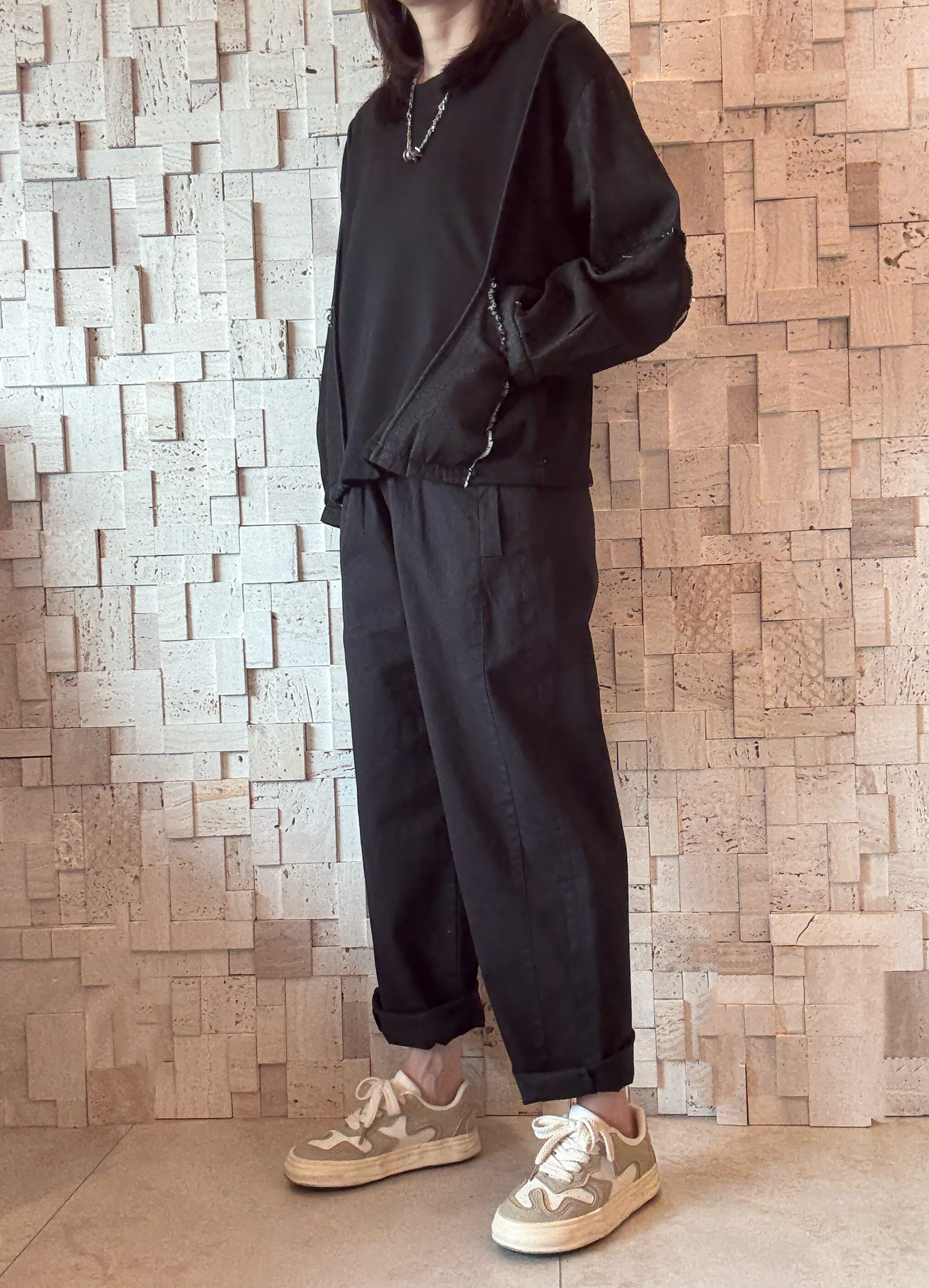 -珠地棉質料 -黑色牛仔拼接手袖 -有兩個直袋位