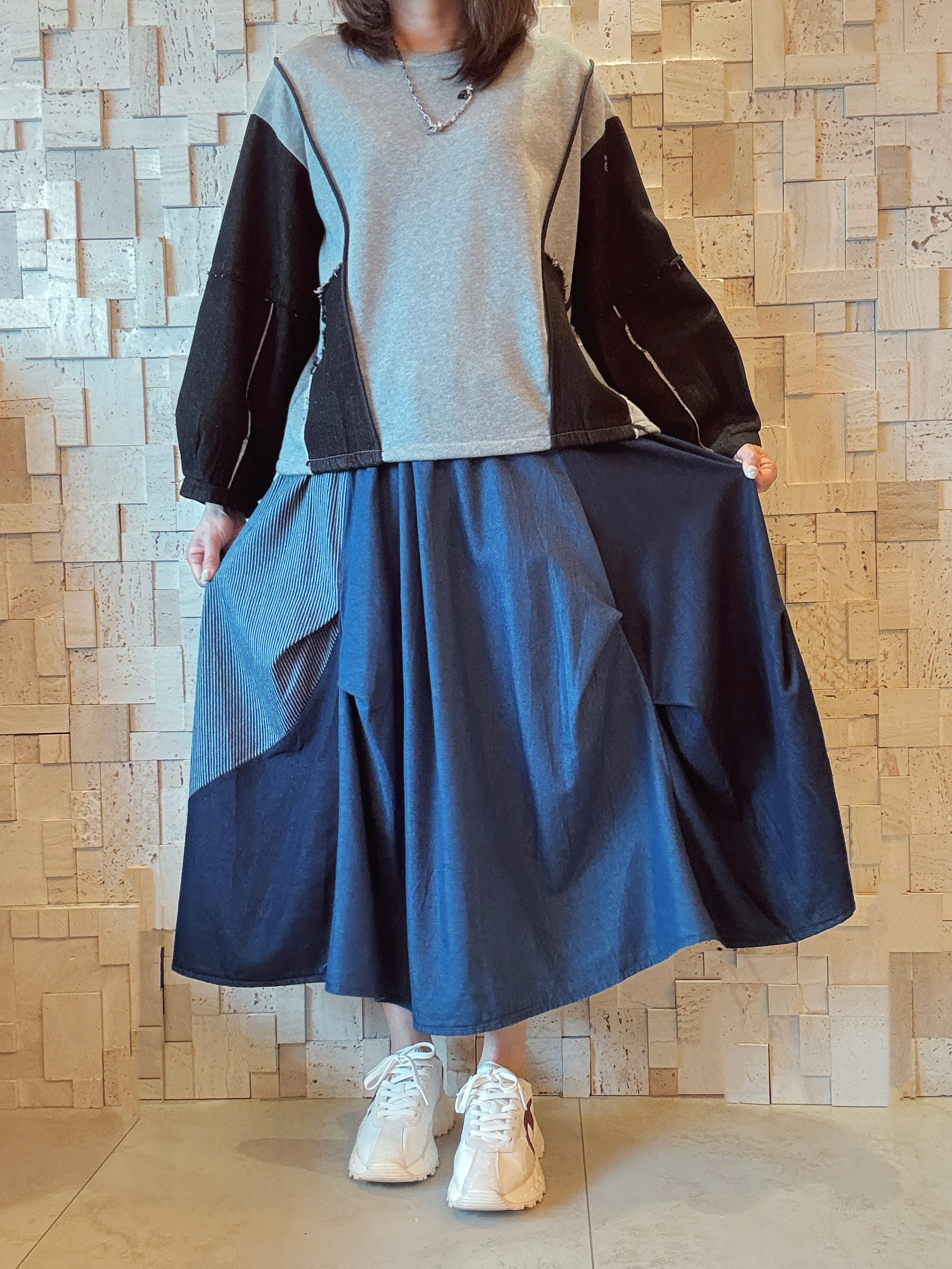 #2001 牛仔拼棉Top