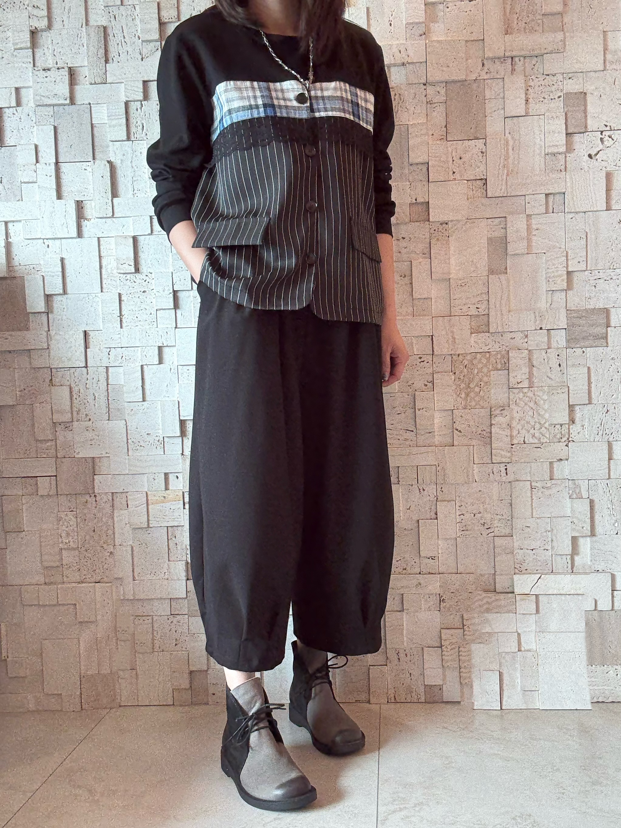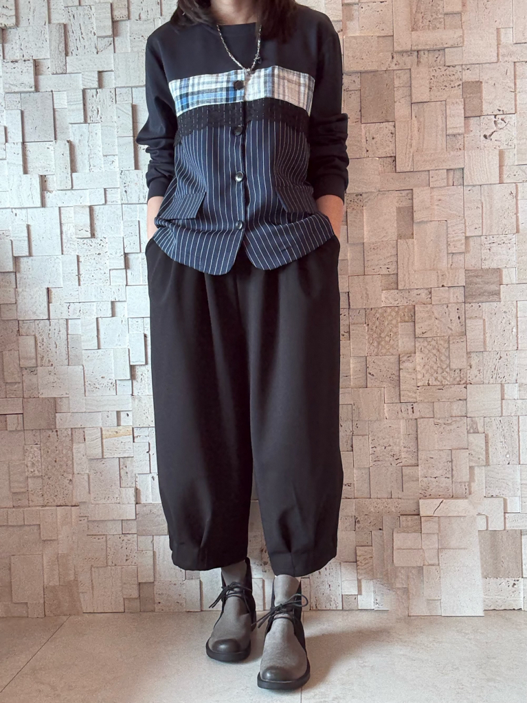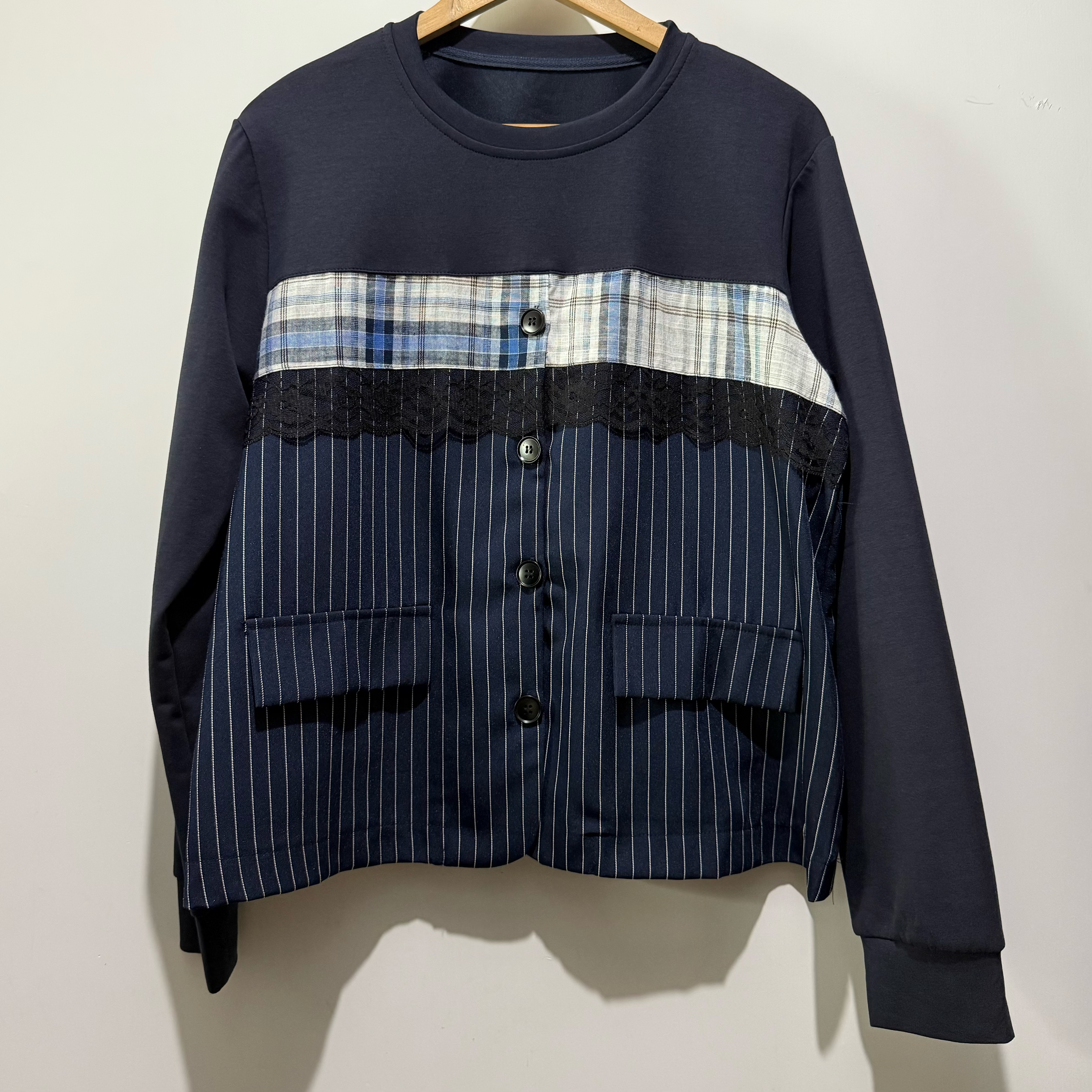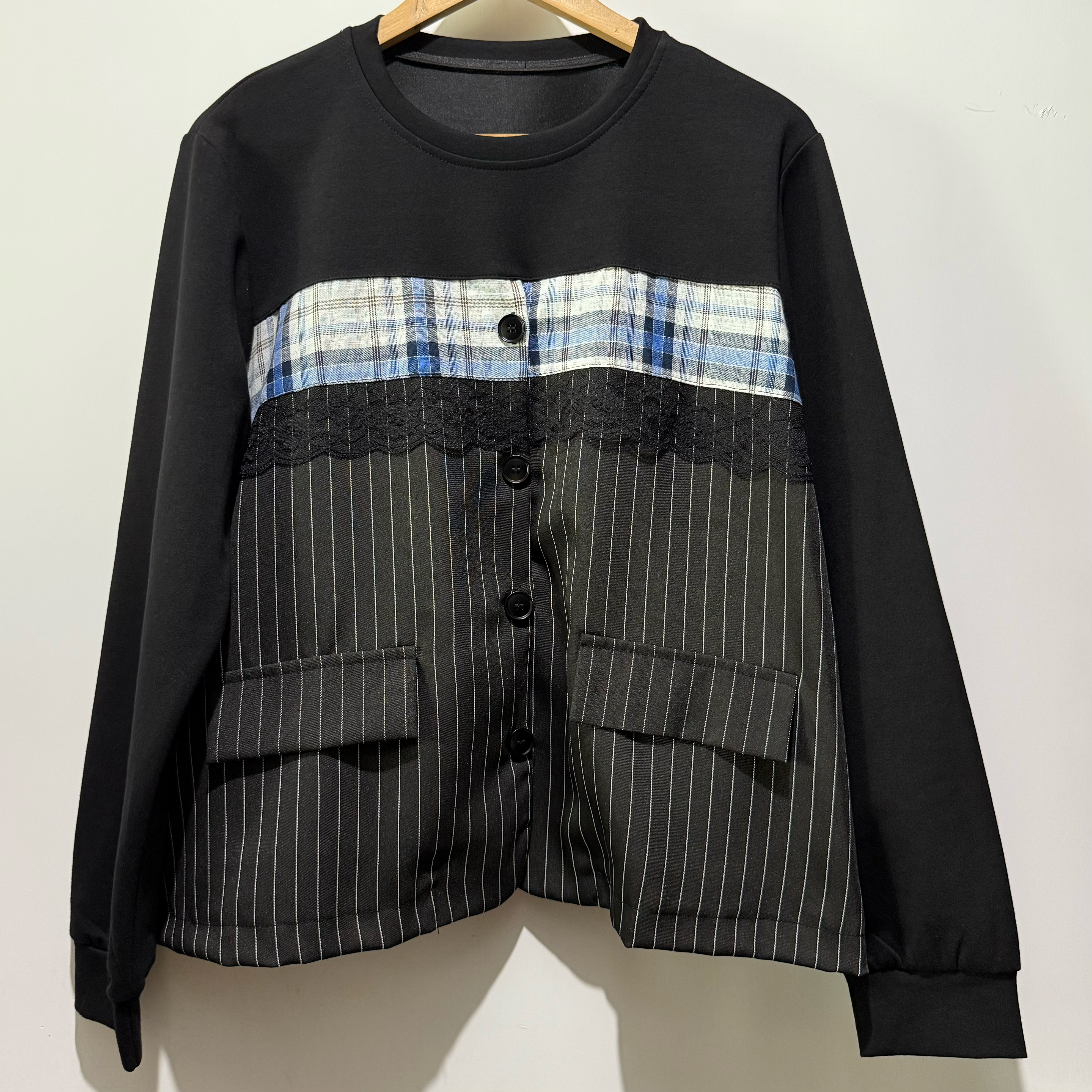 呢件用咗唔同既布料做拼接 衞衣既cutting 配搭咗格仔布/喱士花邊 好適合返工著 假袋嚟架 無袋位