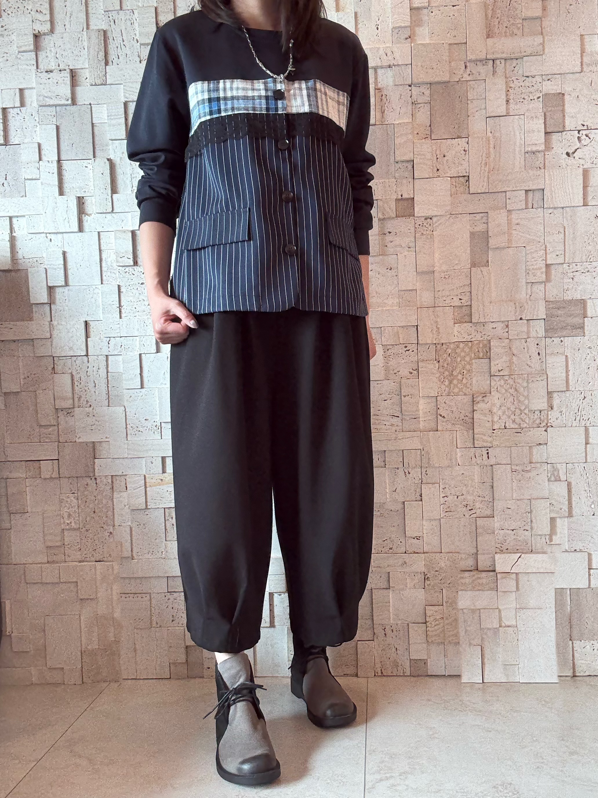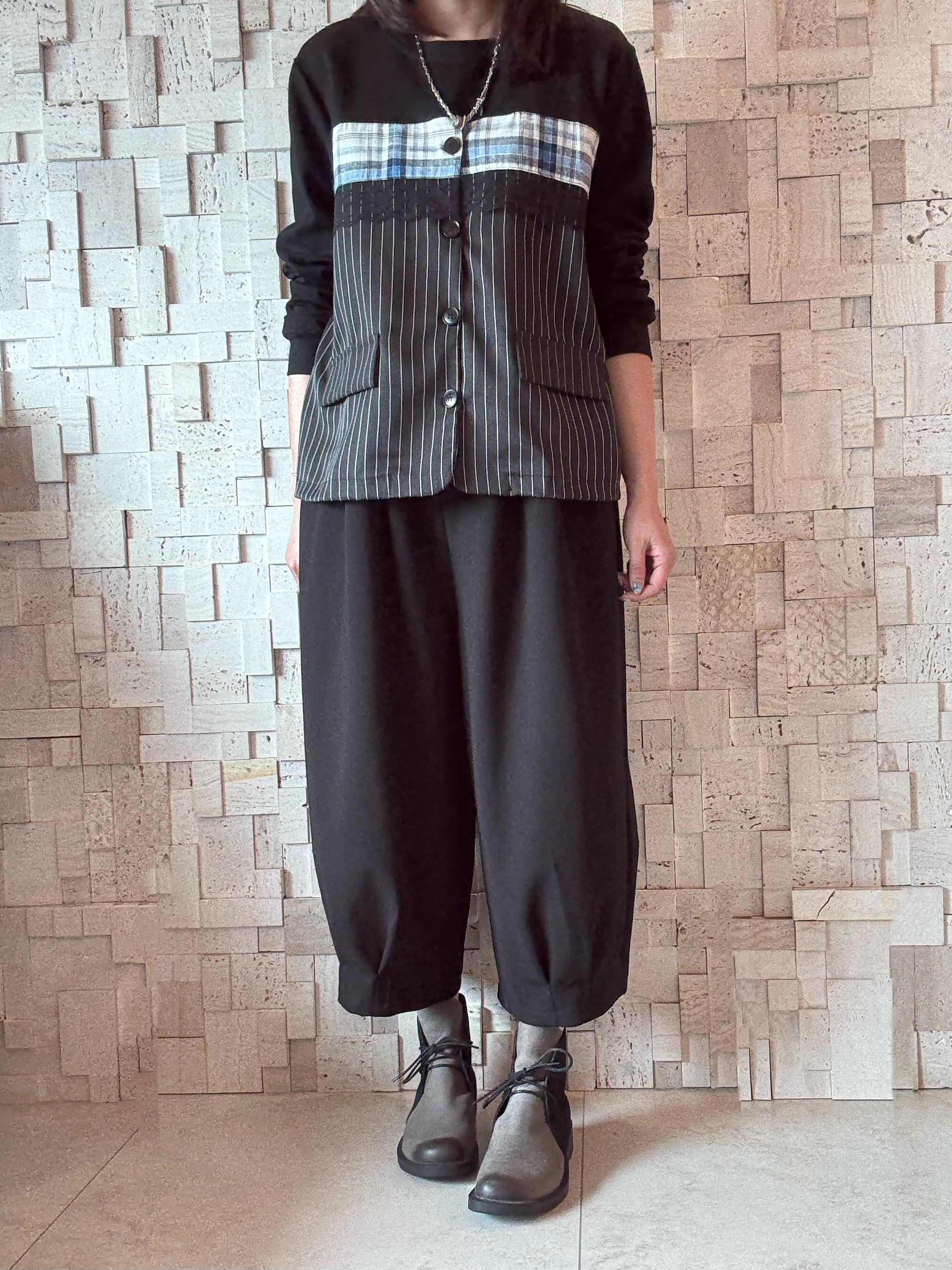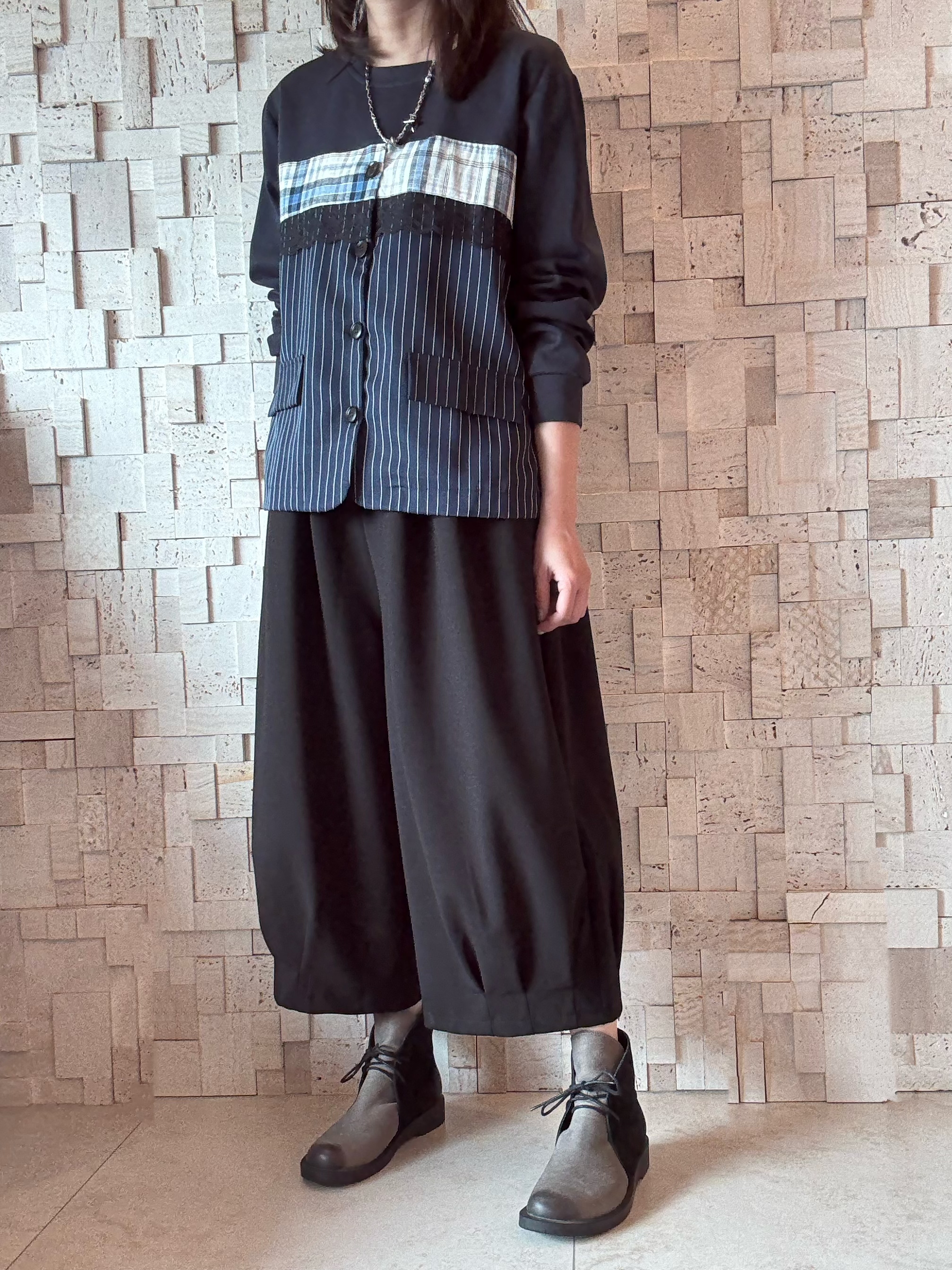 呢件用咗唔同既布料做拼接 衞衣既cutting 配搭咗格仔布/喱士花邊 好適合返工著 假袋嚟架 無袋位