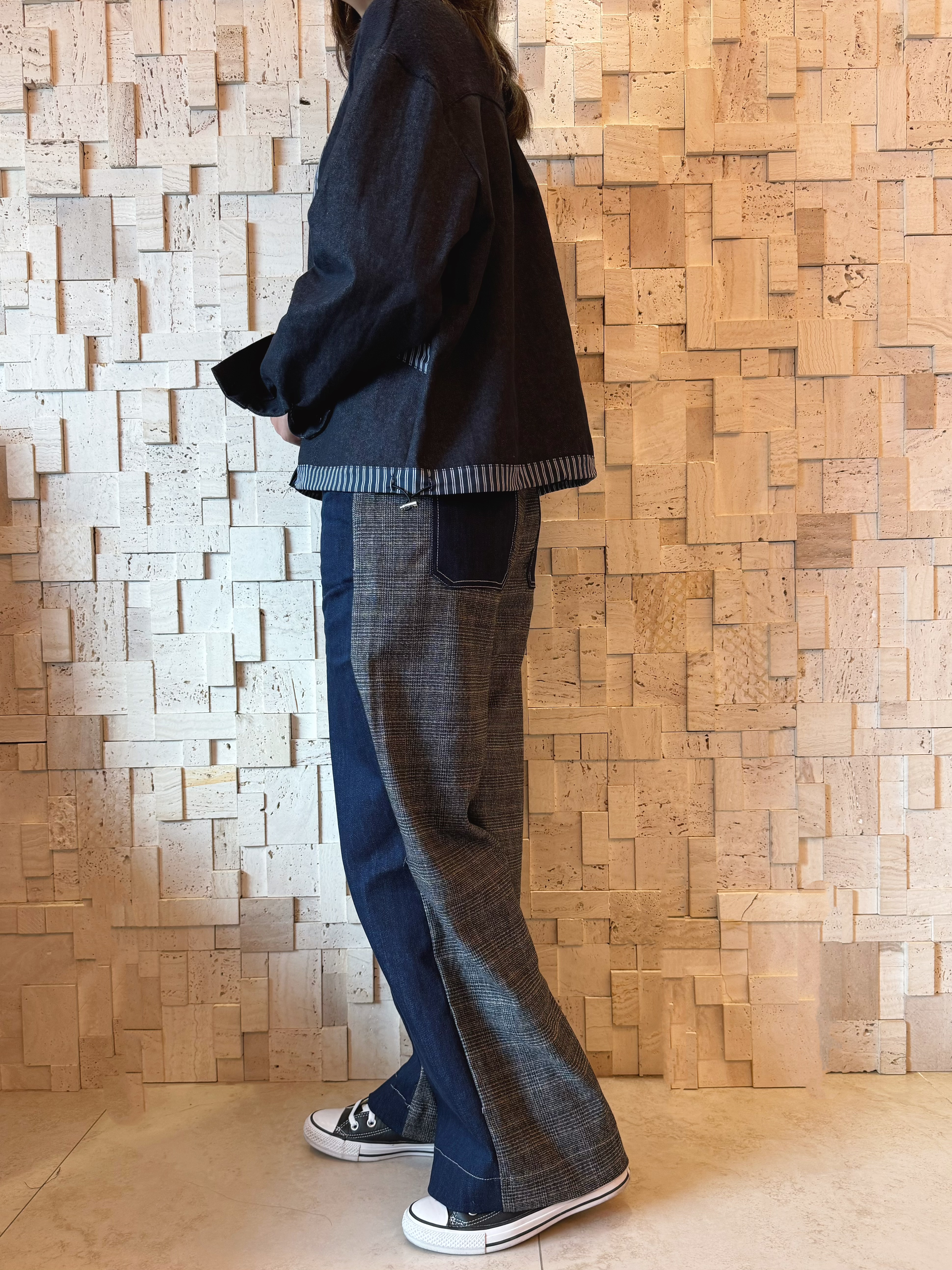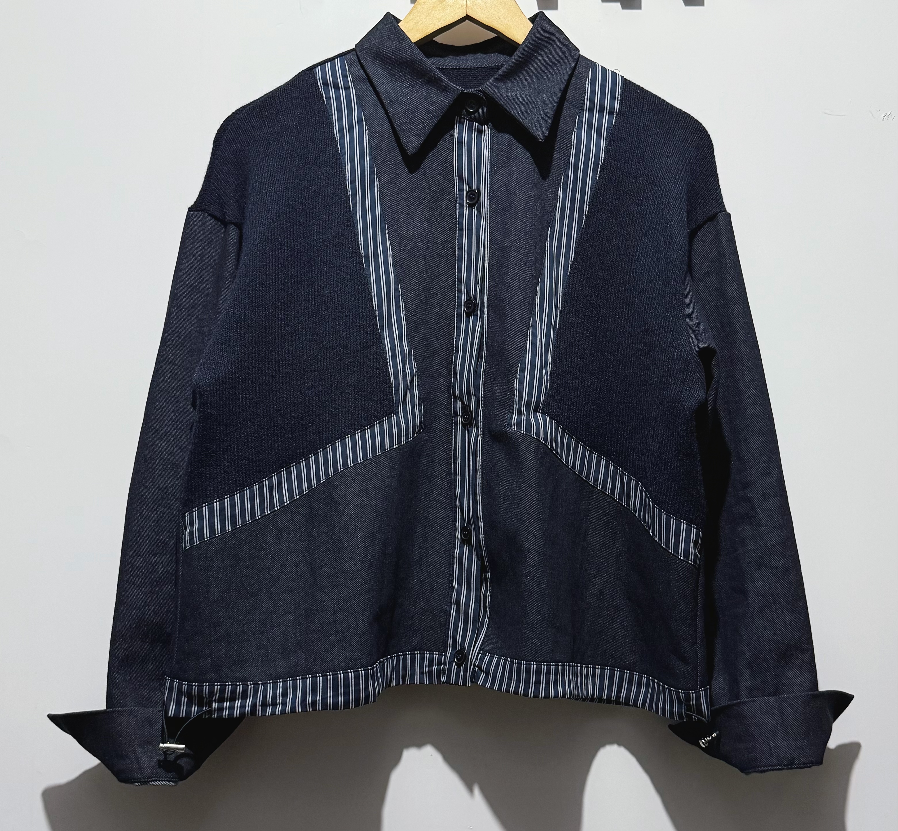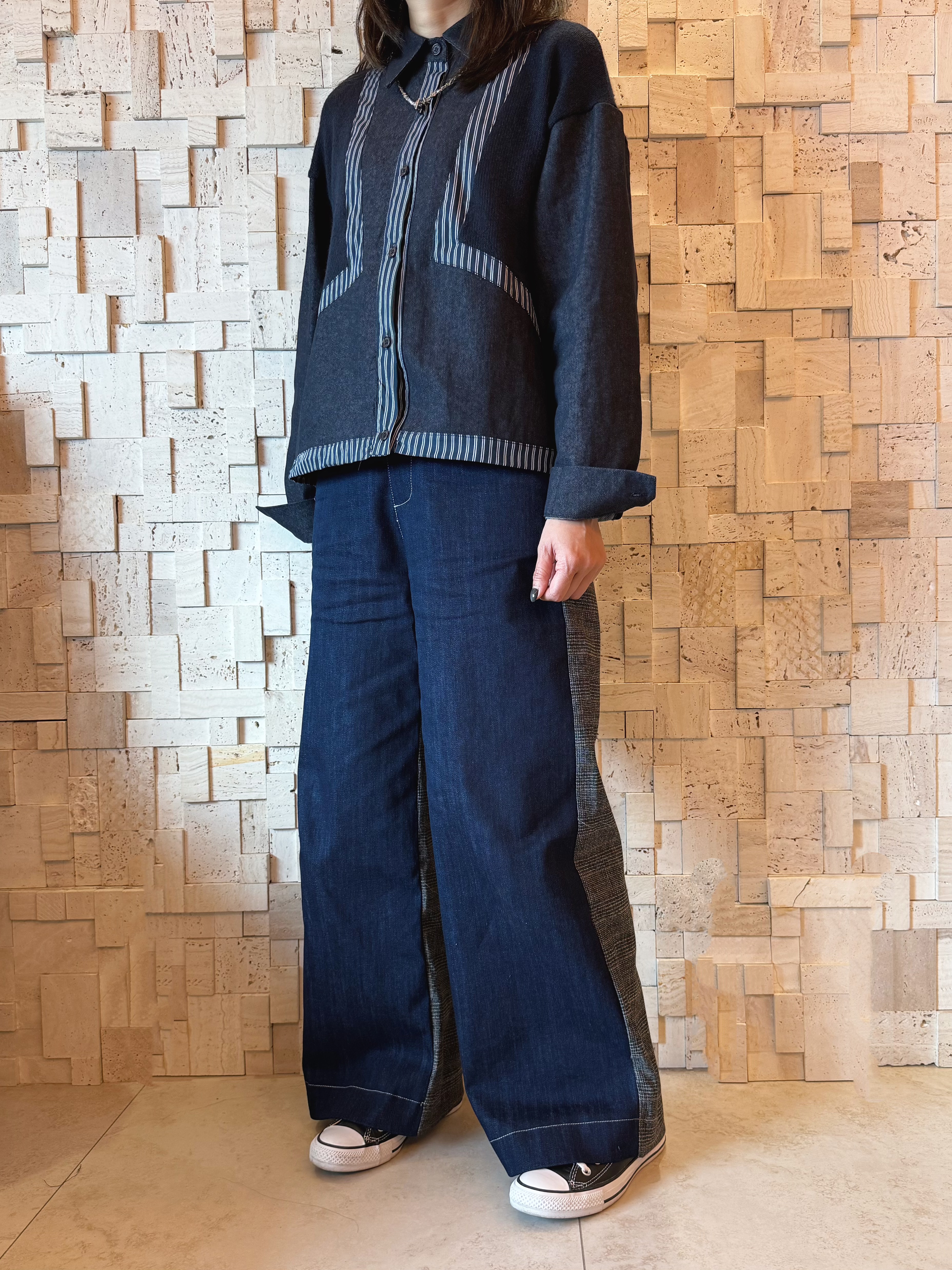 呢件我一見到就超鐘意 用咗三種唔同物料做拼接 牛仔布/直條紋/針織料 Cutting靚有層次 收貨實鐘意😊 襯埋呢條牛仔褲 好鬼型