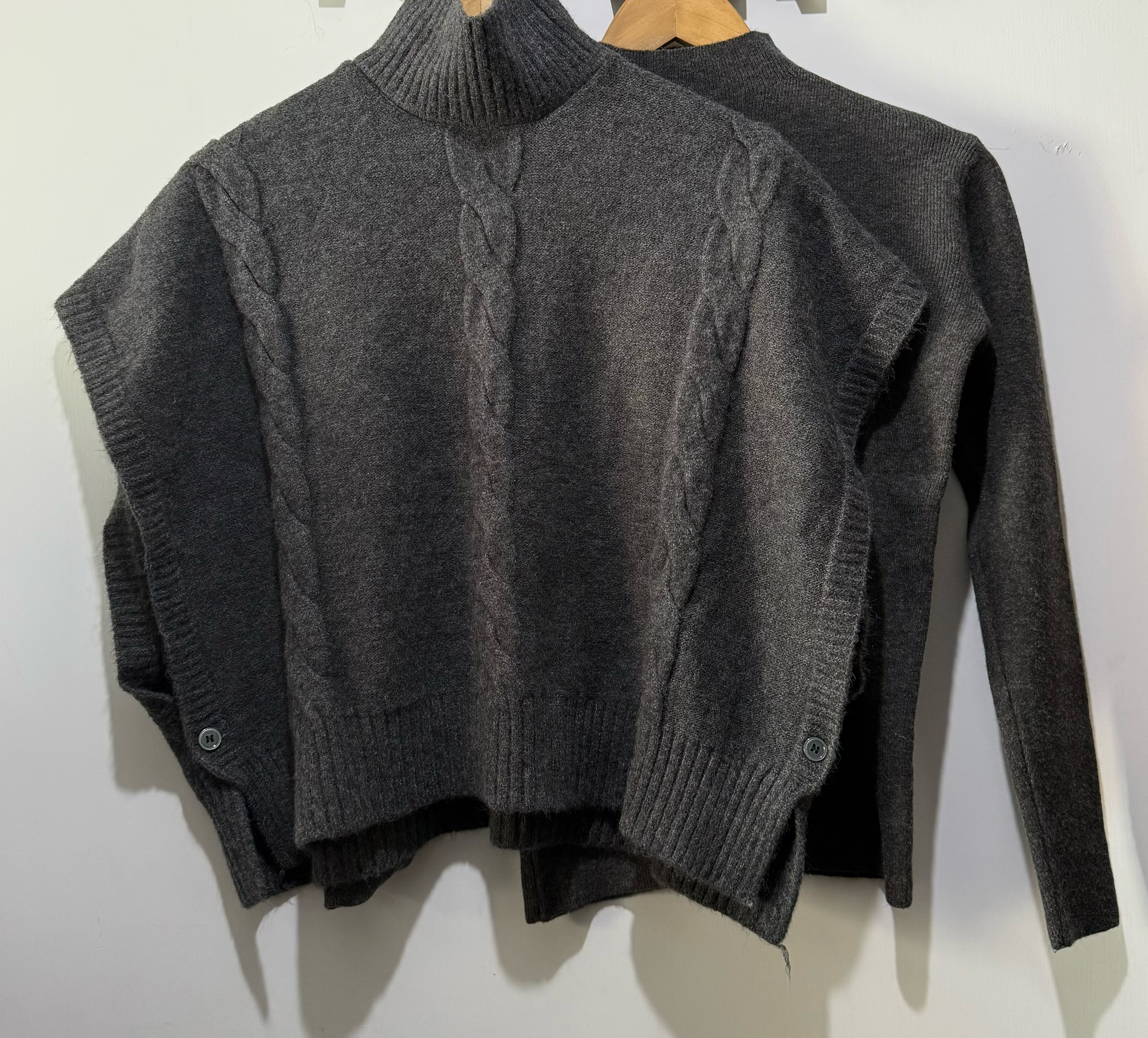 呢件套裝嚟架 滑身針織料 外面果件斗篷型 夾位無限大 入面襯咗保暖既針織打底 成套都好斯文 返工著 價錢優惠 只有少量現貨