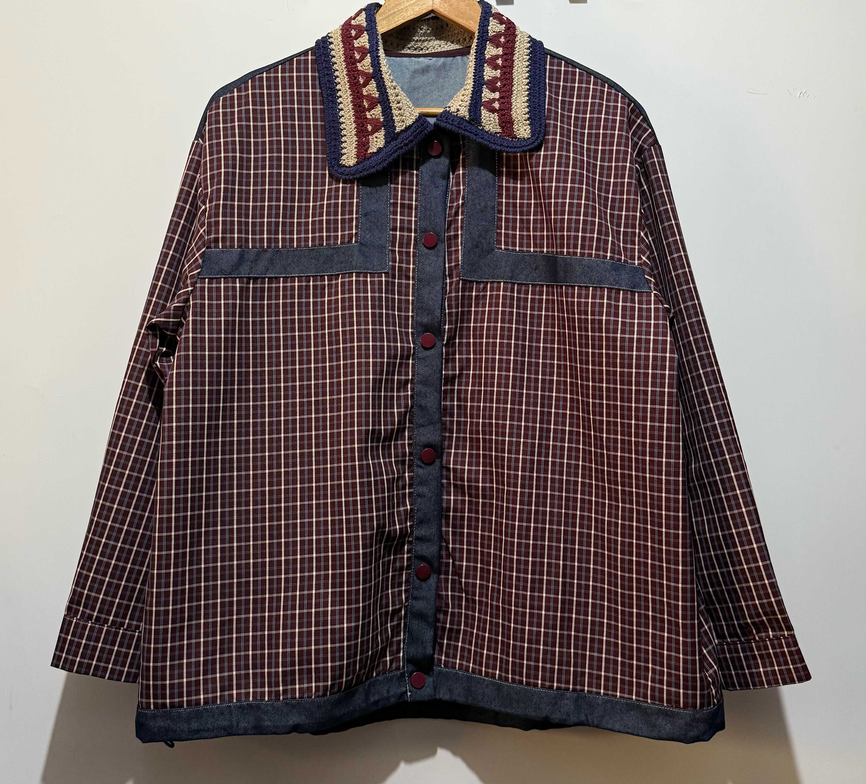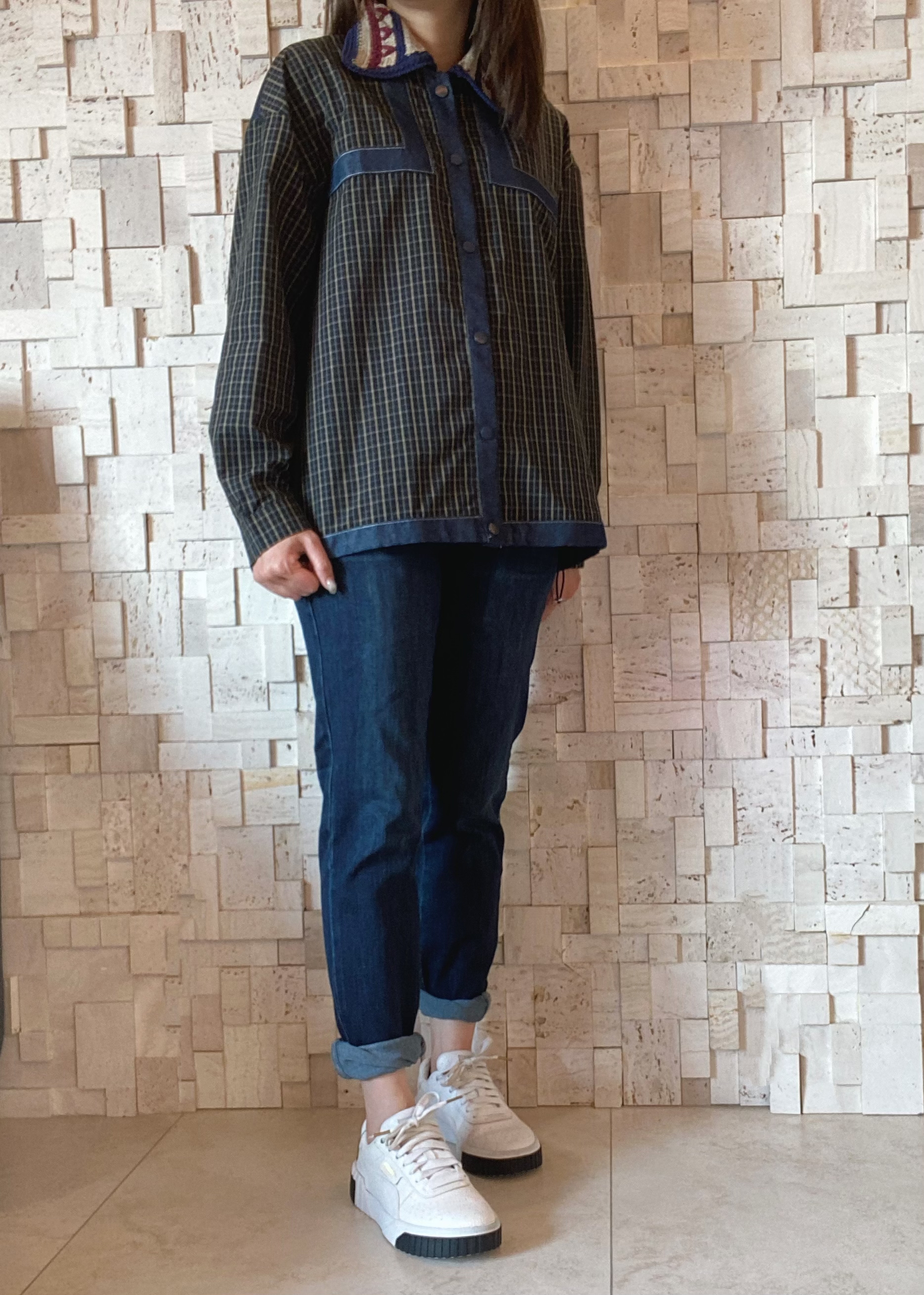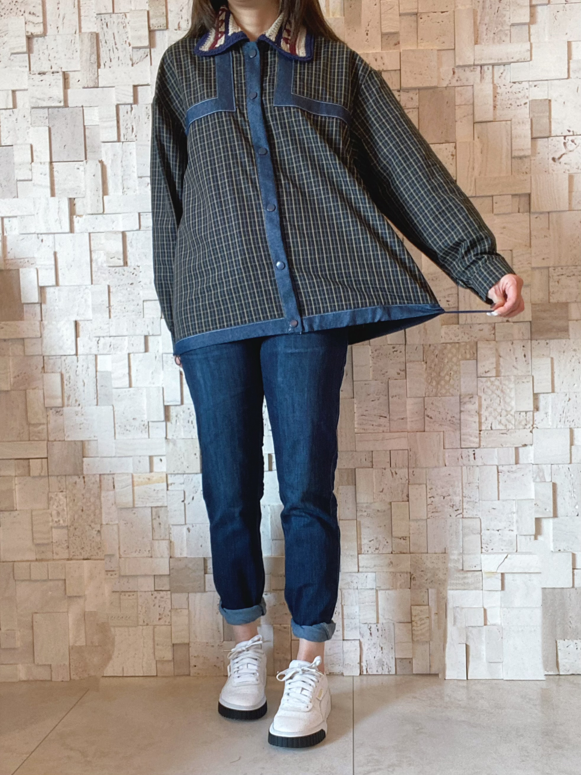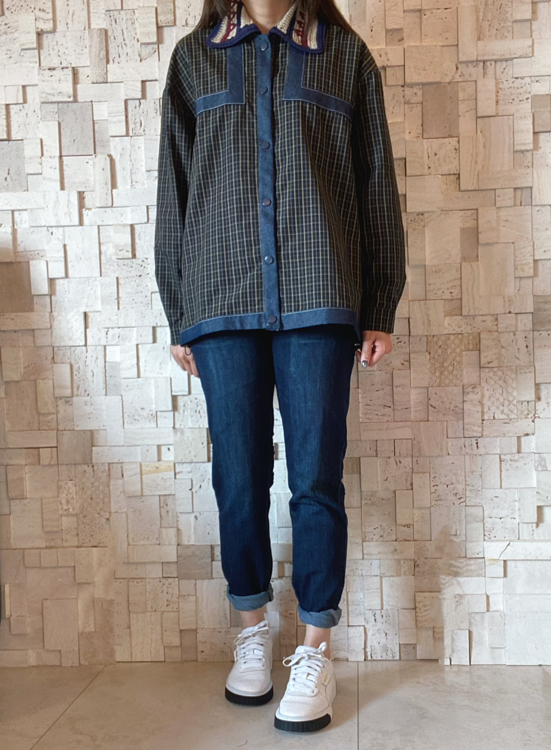 呢件領位手工做得好靚😍好特別 復古感風格 啪鈕設計 衫腳有束帶 邊位拼咗牛仔布