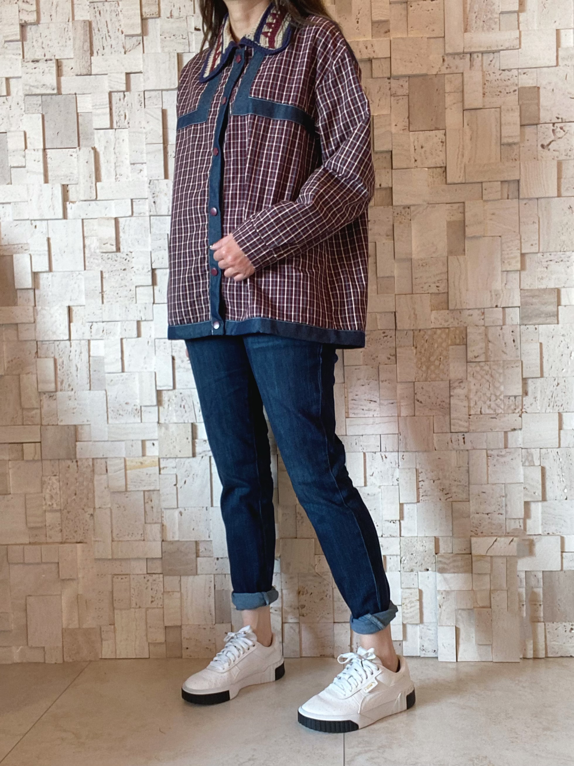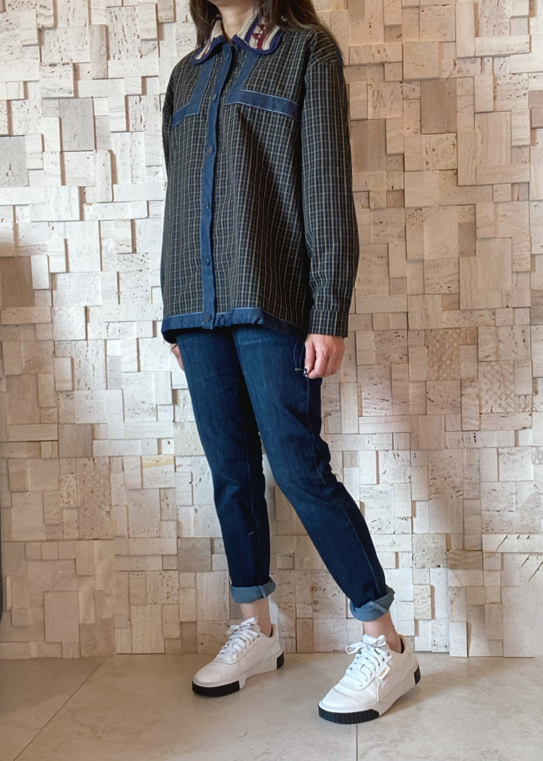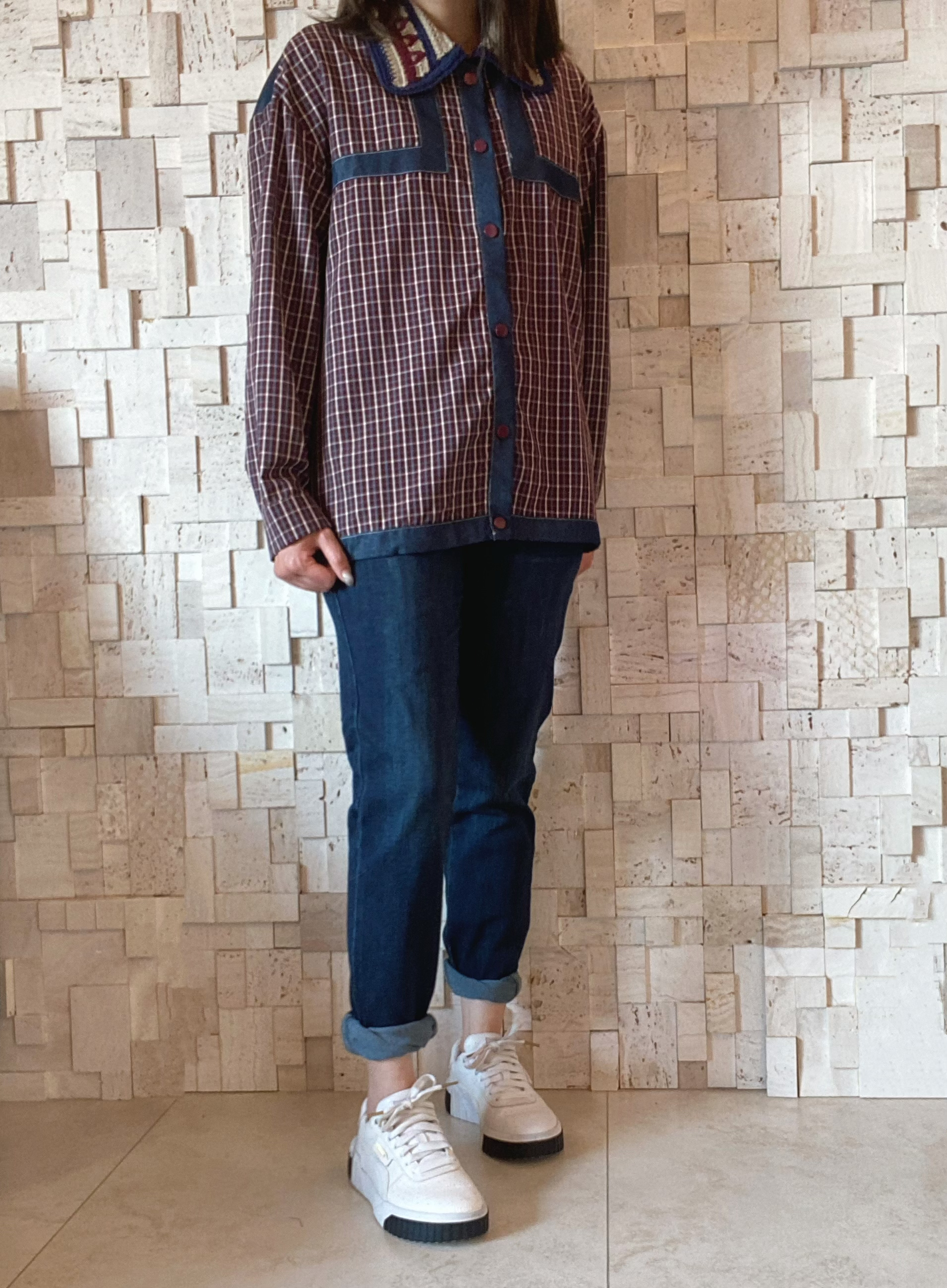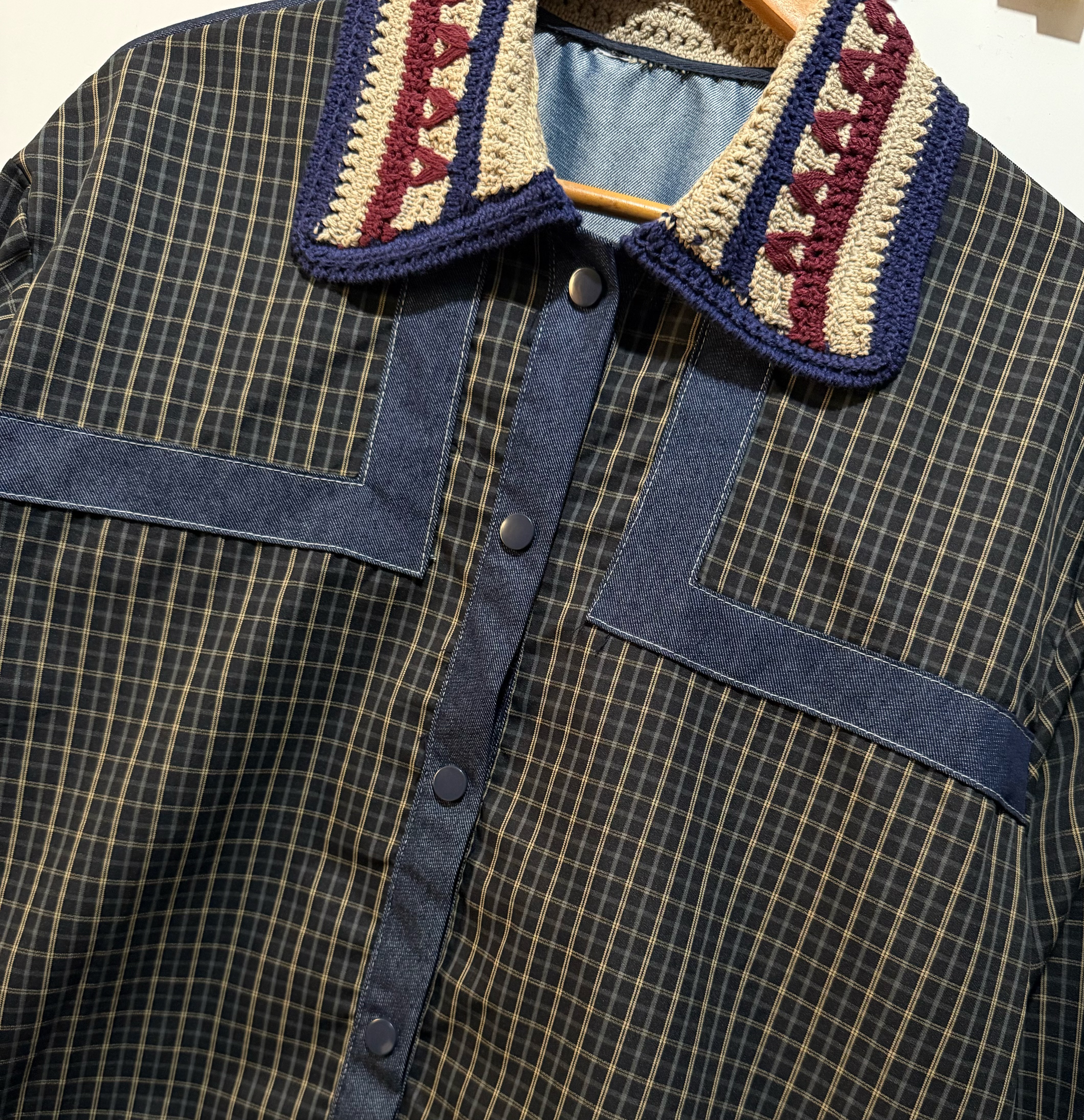 呢件領位手工做得好靚😍好特別 復古感風格 啪鈕設計 衫腳有束帶 邊位拼咗牛仔布