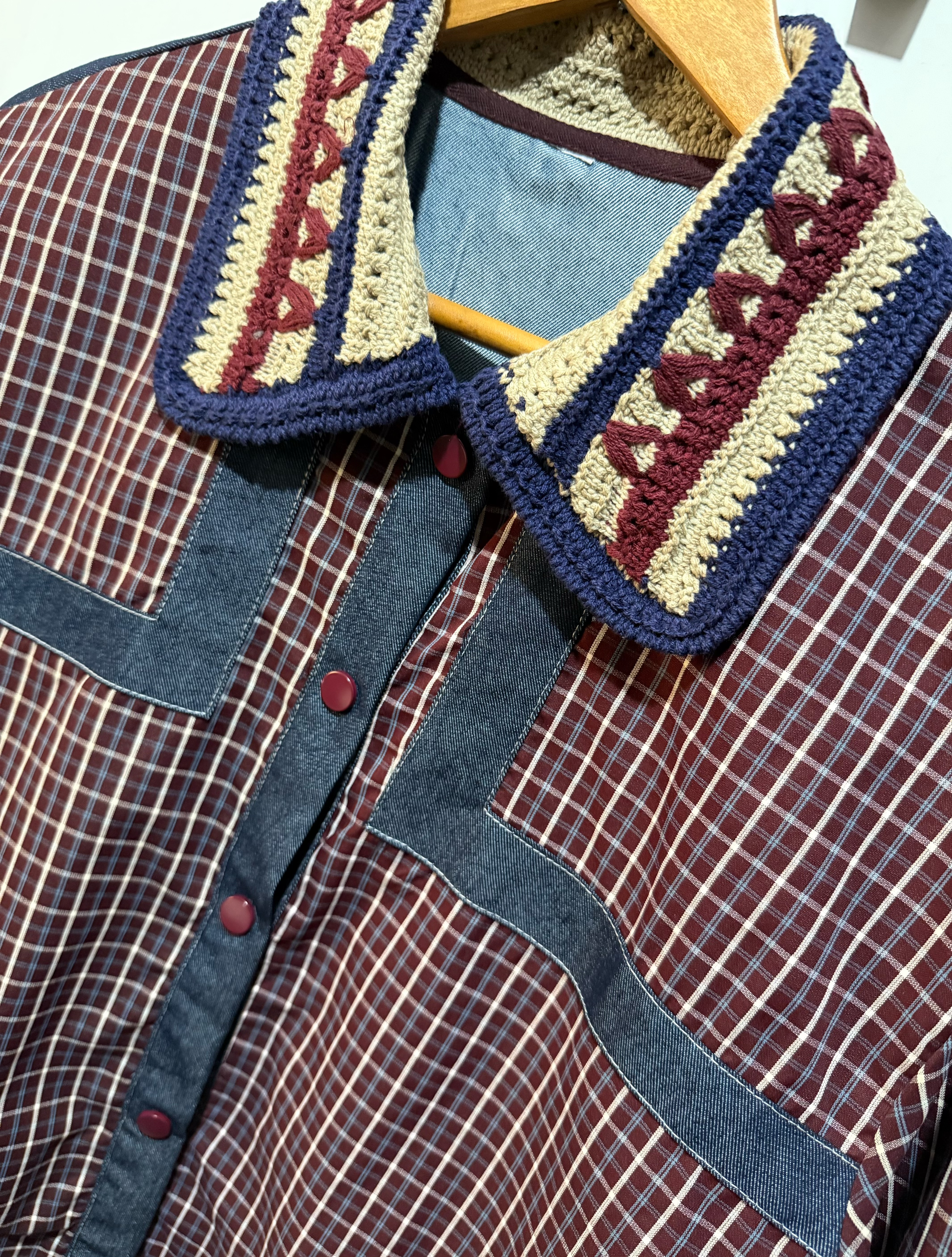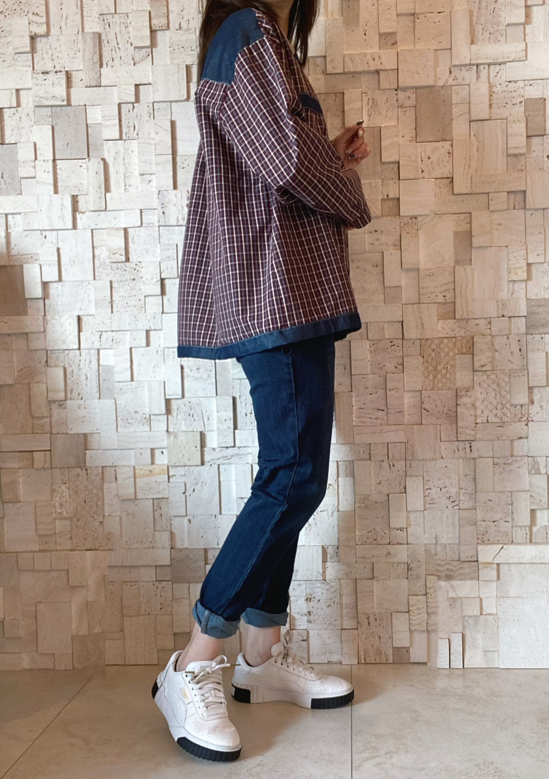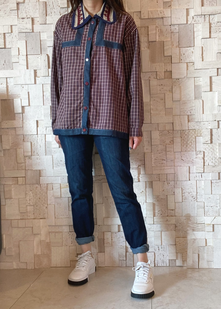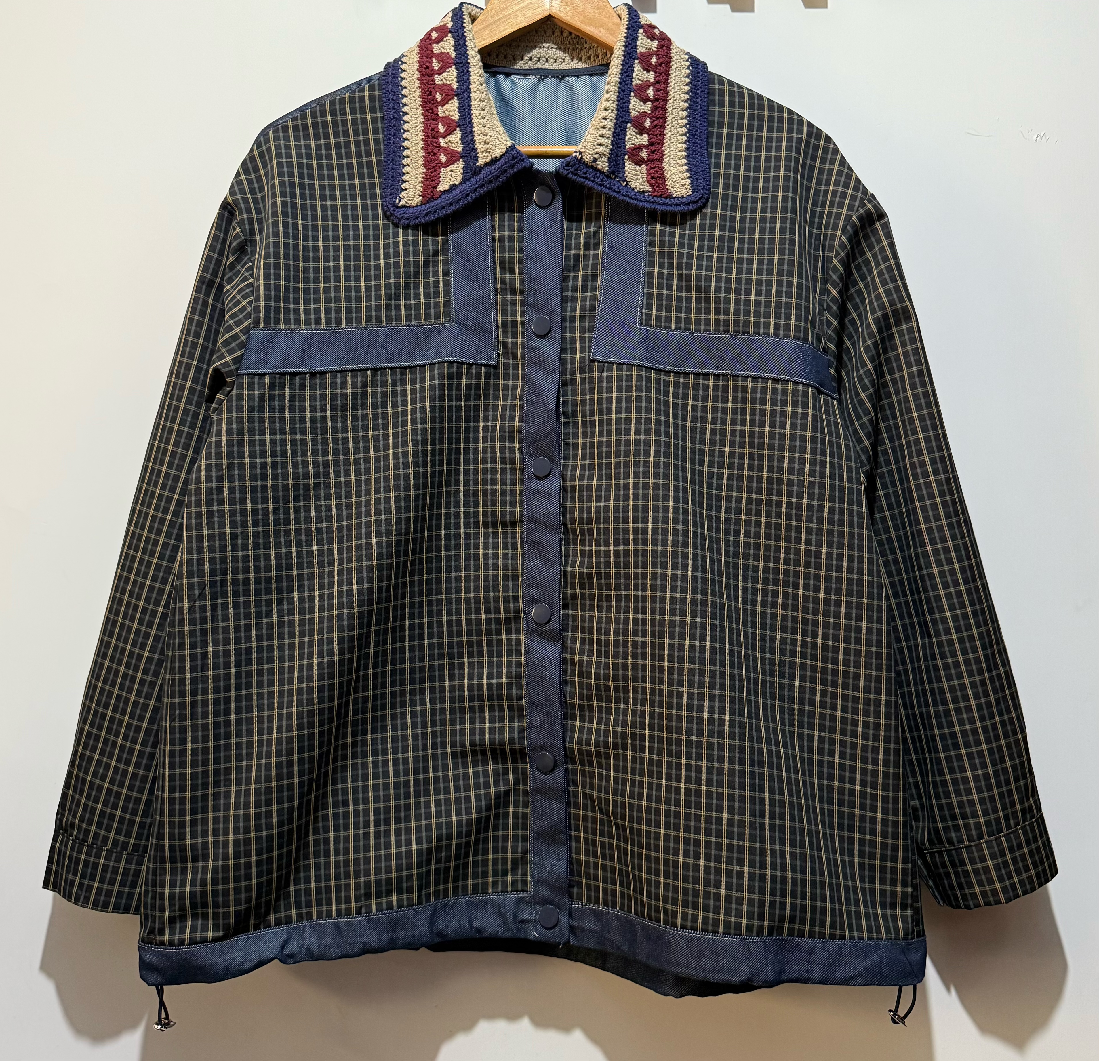 呢件領位手工做得好靚😍好特別 復古感風格 啪鈕設計 衫腳有束帶 邊位拼咗牛仔布