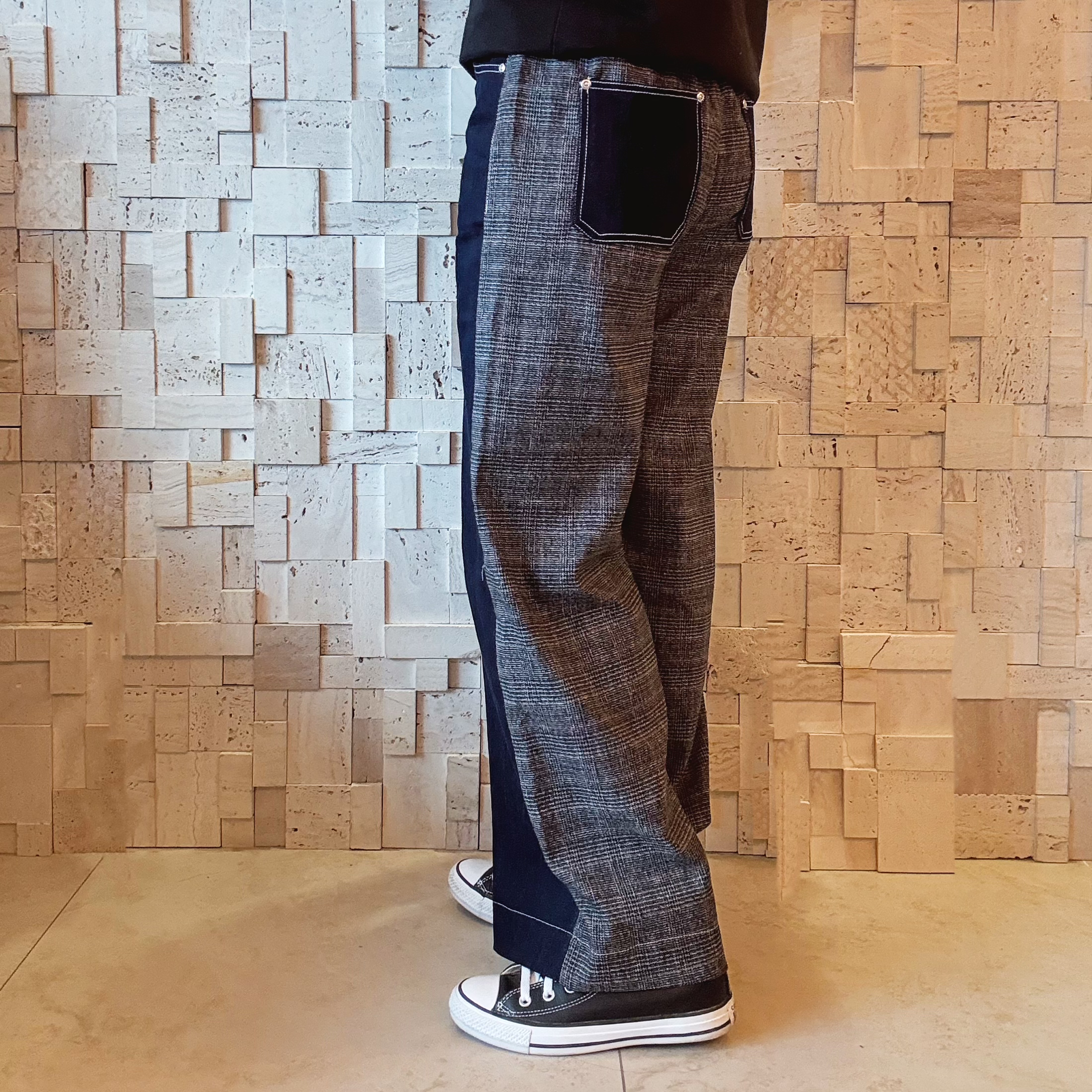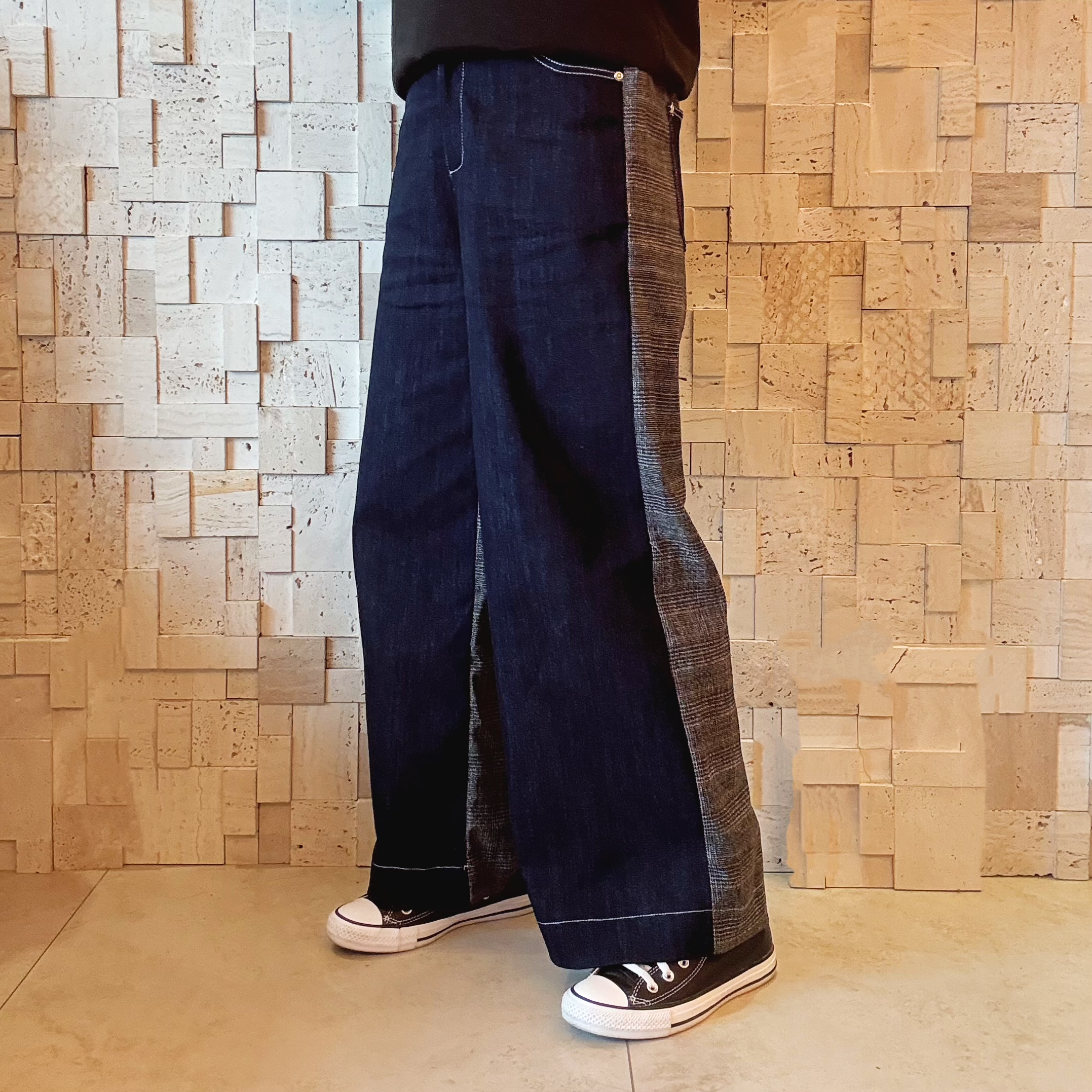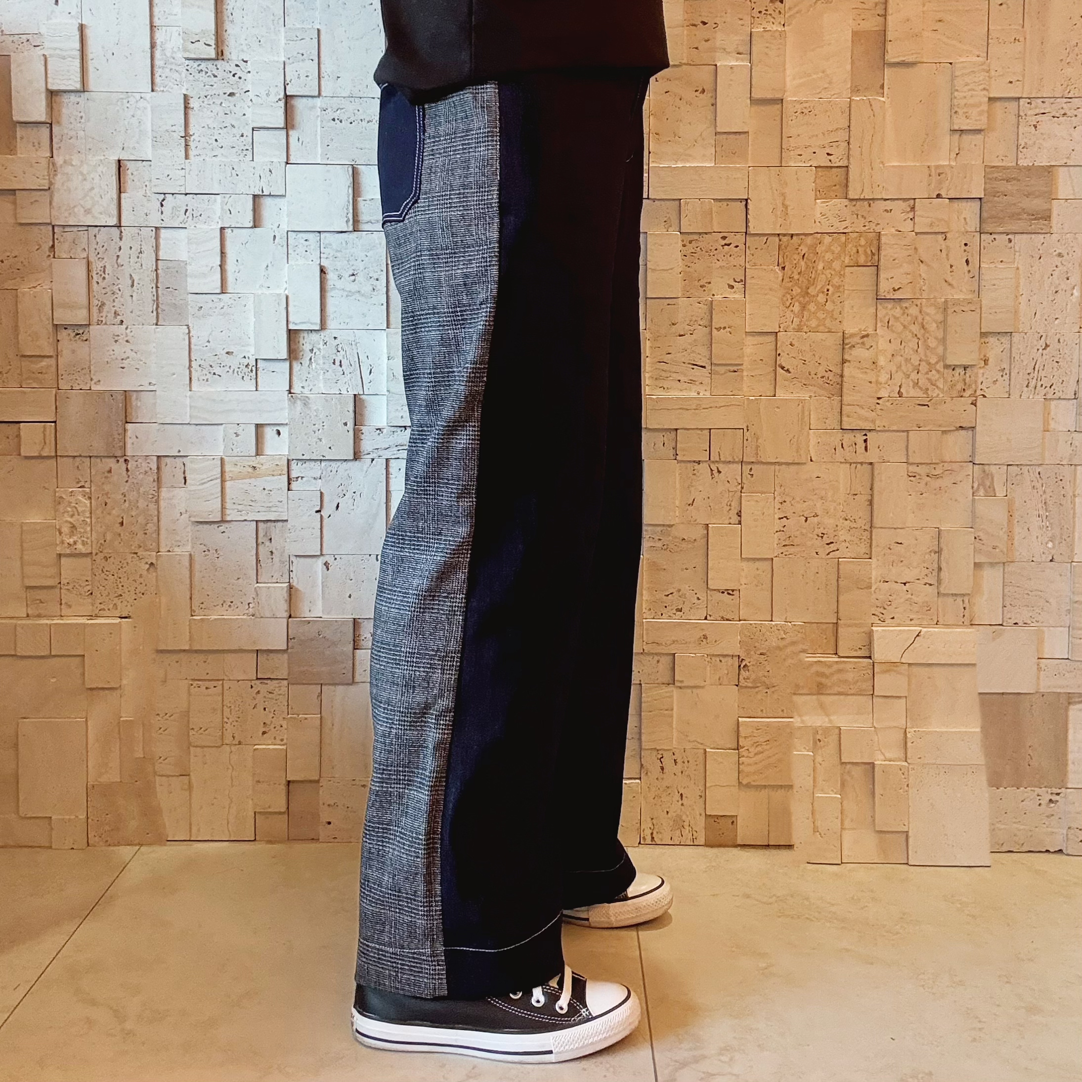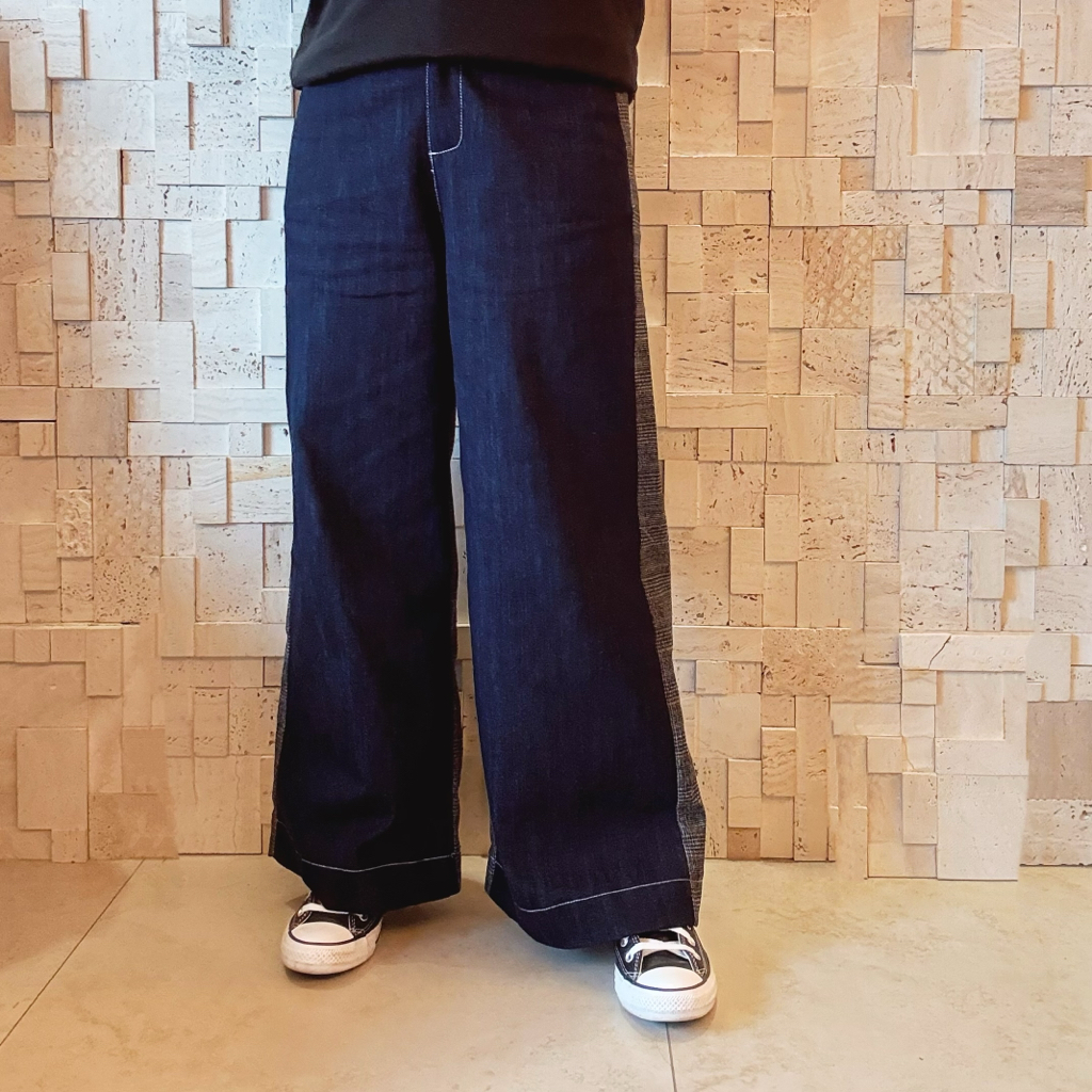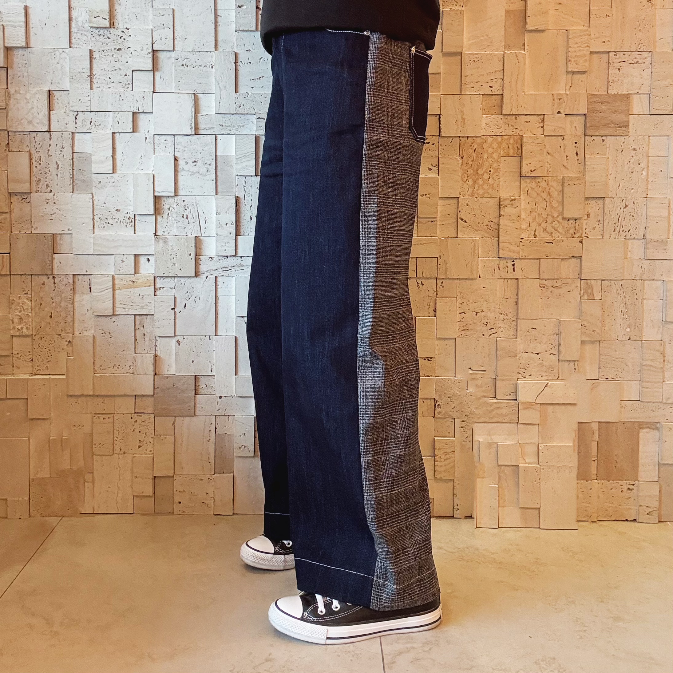 B00543 拼色拼布牛仔闊褲