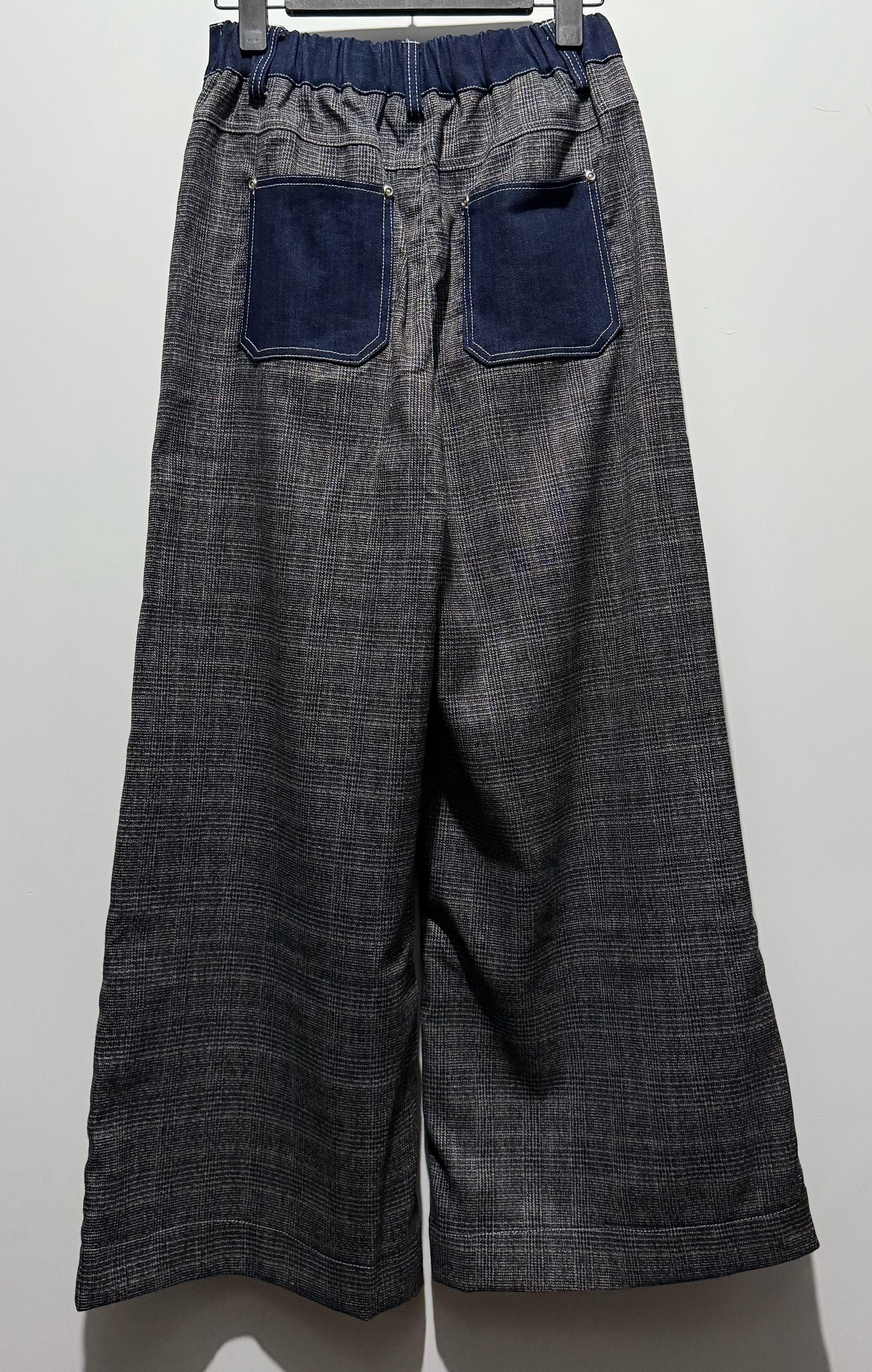 呢條前後做咗拼布 有特色 前幅拼深牛仔 後幅用咗格仔紋 我自己都留咗一條 好鐘意 前扣鈕後橡筋腰 P.S:✅有袋位✅