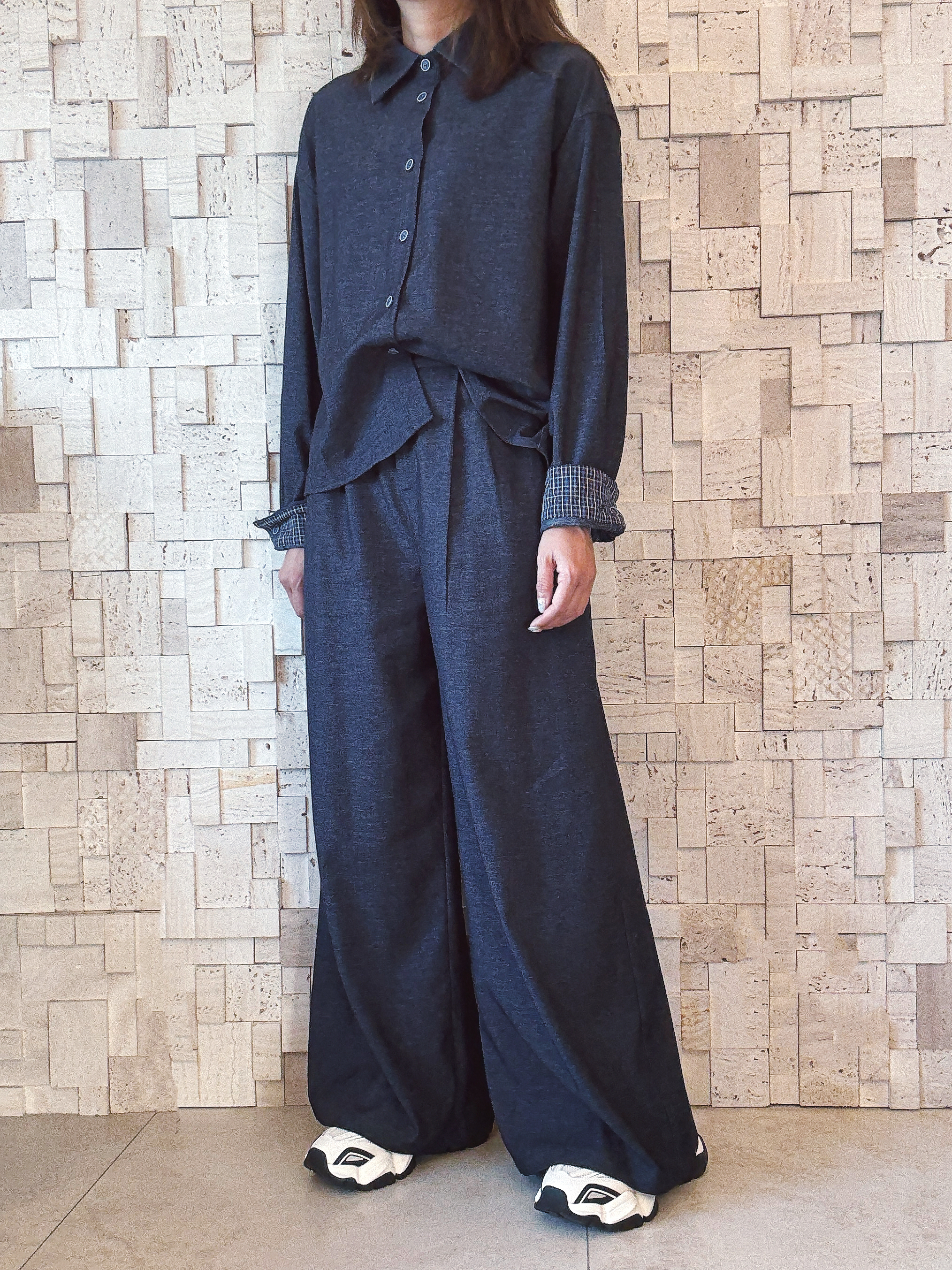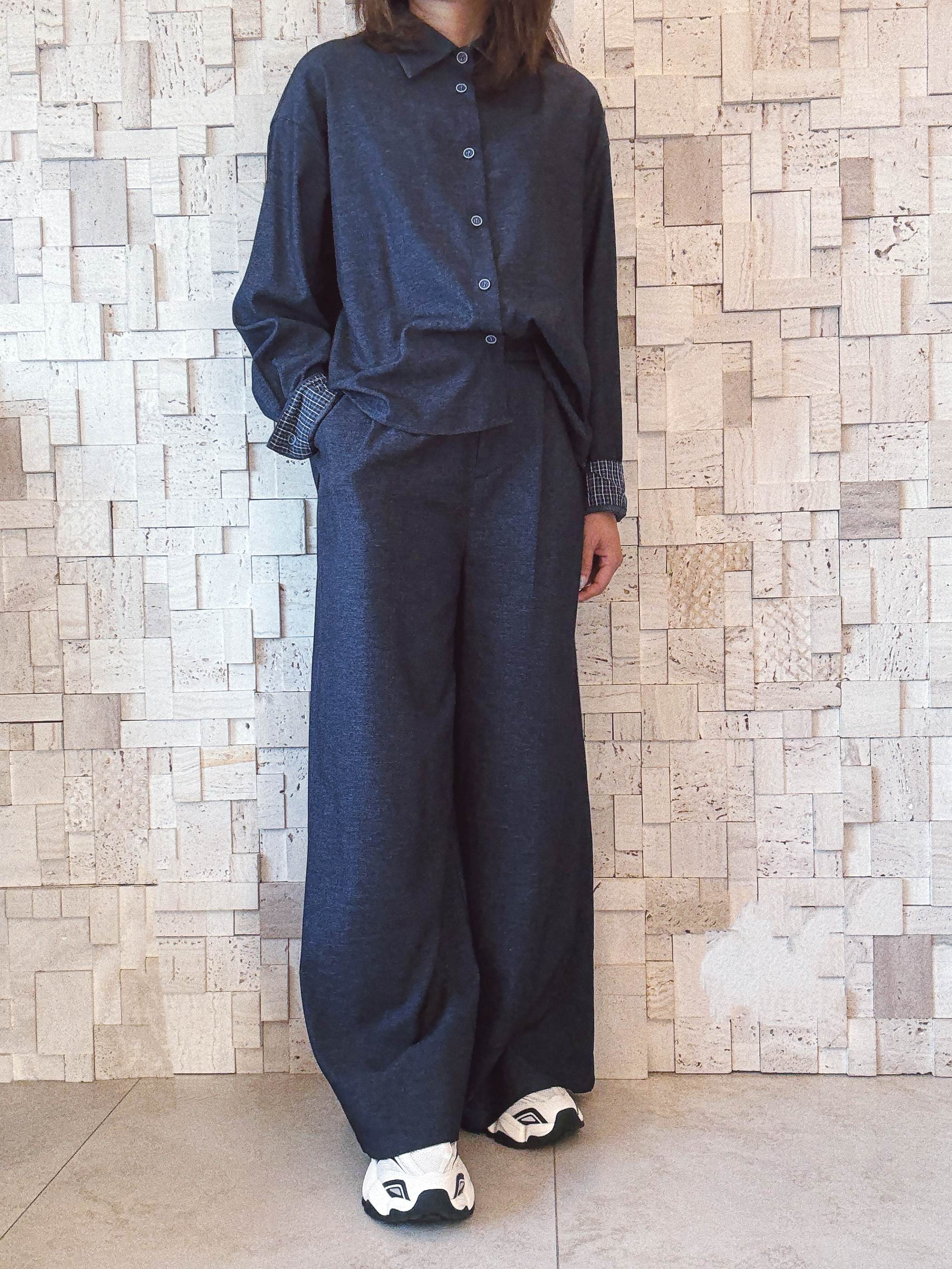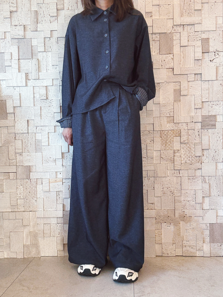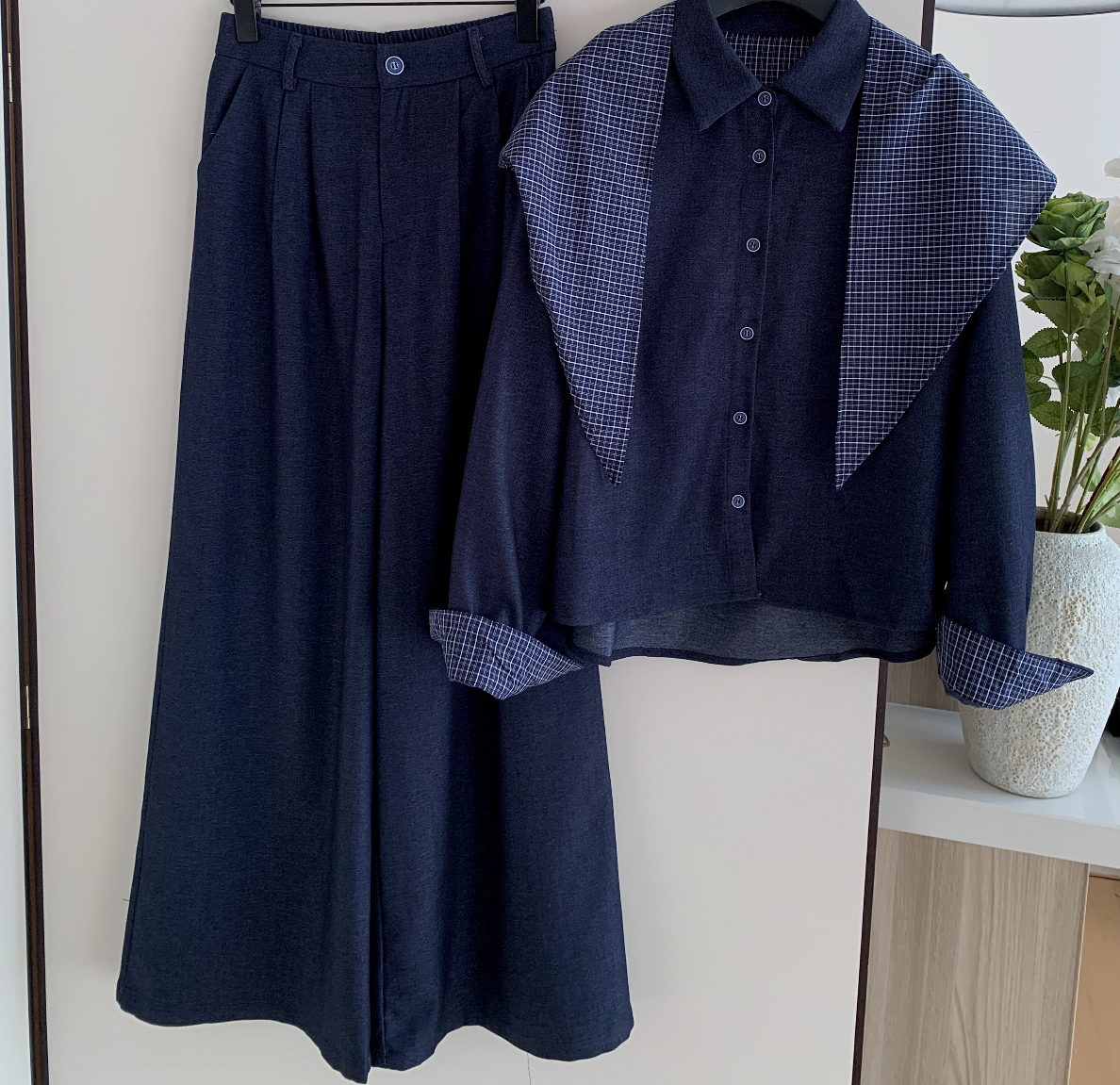 -呢套我自己好鐘意 -自留咗一套俾自己 -手袖拼咗格仔布 反摺一下著 -高腰褲 前扣後橡筋 -漏影咗條褲披肩🤭 P.S:✅有袋位✅